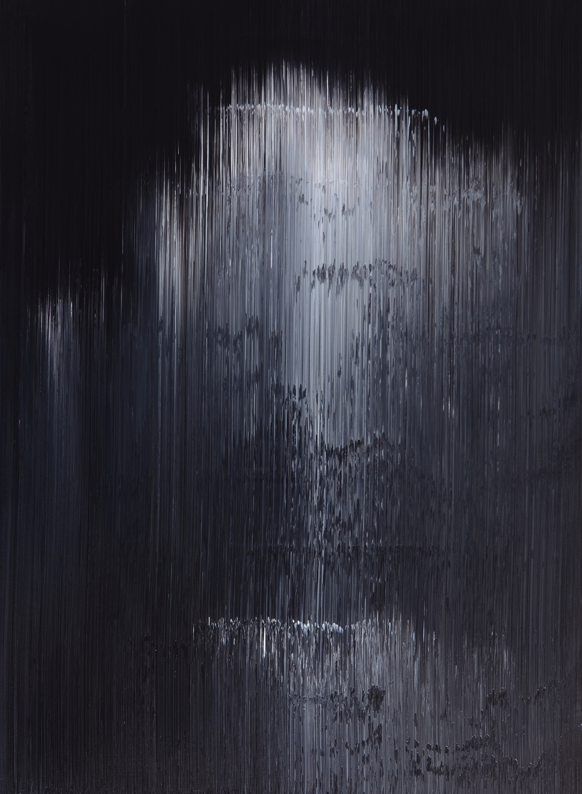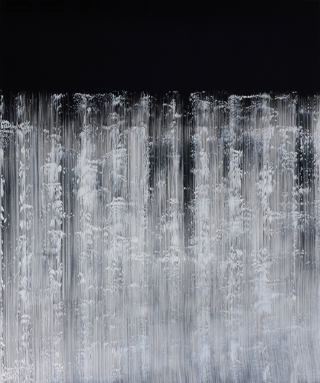 He does not dictate this trajectory, however, as even in small formats, he cannot control every area and movement of his canvas and brush. The balance of the piece is the result of a suspension of chance, a momentary tension, an imperfection that needs to be treasured. Here too, dichotomies emerge: if Akihito Takuma considers his work as a failure, he starts the entire process again.