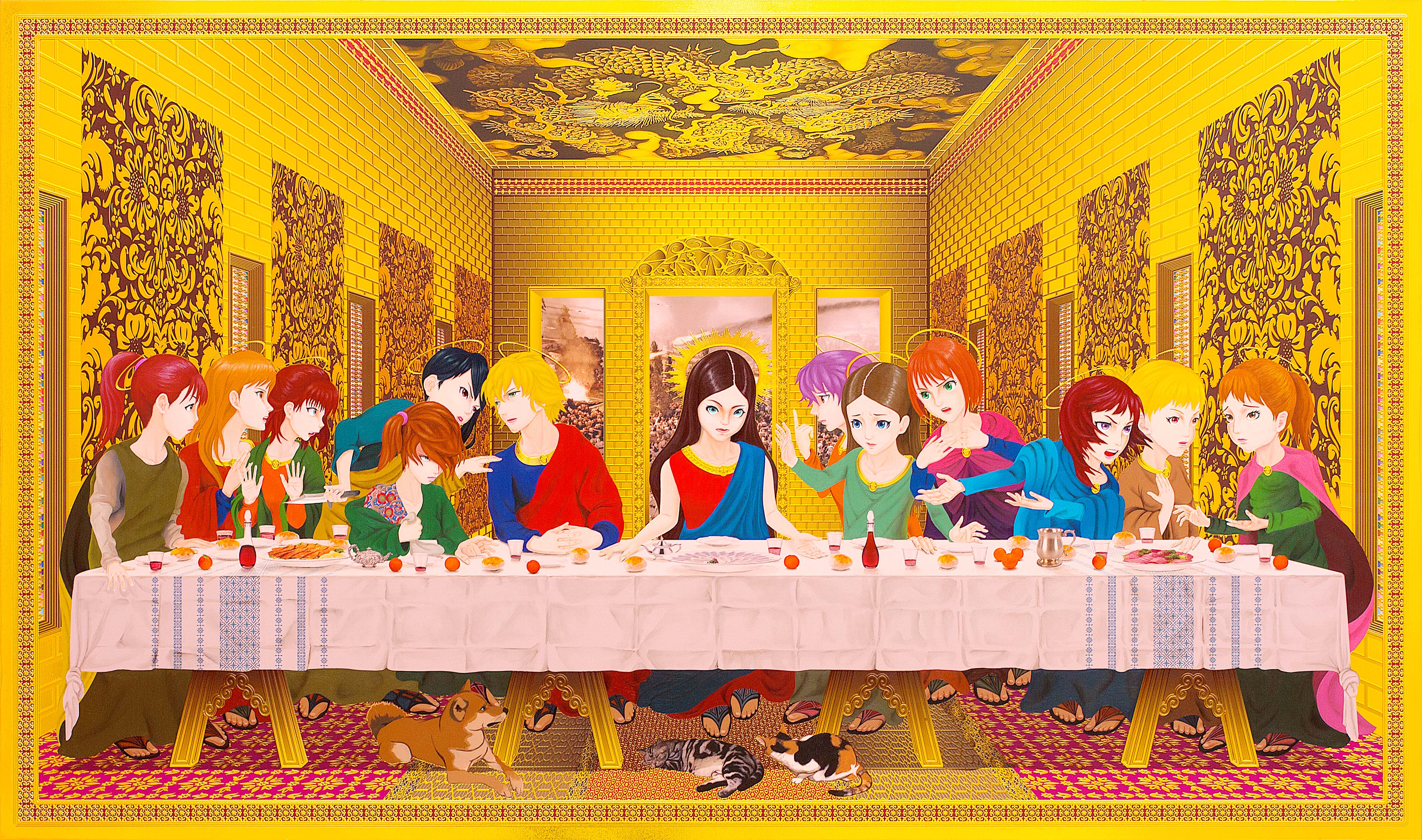 From Leonardo da Vinci to Roy Lichtenstein via Ito Jakuchu (the flatness of whose work is characteristic of traditional Japanese painting) and Monet, Hiroshi Mori draws inspiration from a broad range of references. With regard to the strong presence of religion in his work, the artist explains in an interview with Hong Kong Tatler: ‘During the tsunami and earthquake in Fukushima in 2011, over 15,000 Japanese people died. I was deeply influenced by the event, and a friend suggested that I read the Bible. The Book of Job inspired me and led to my decision to combine religious iconography with new technology.’
