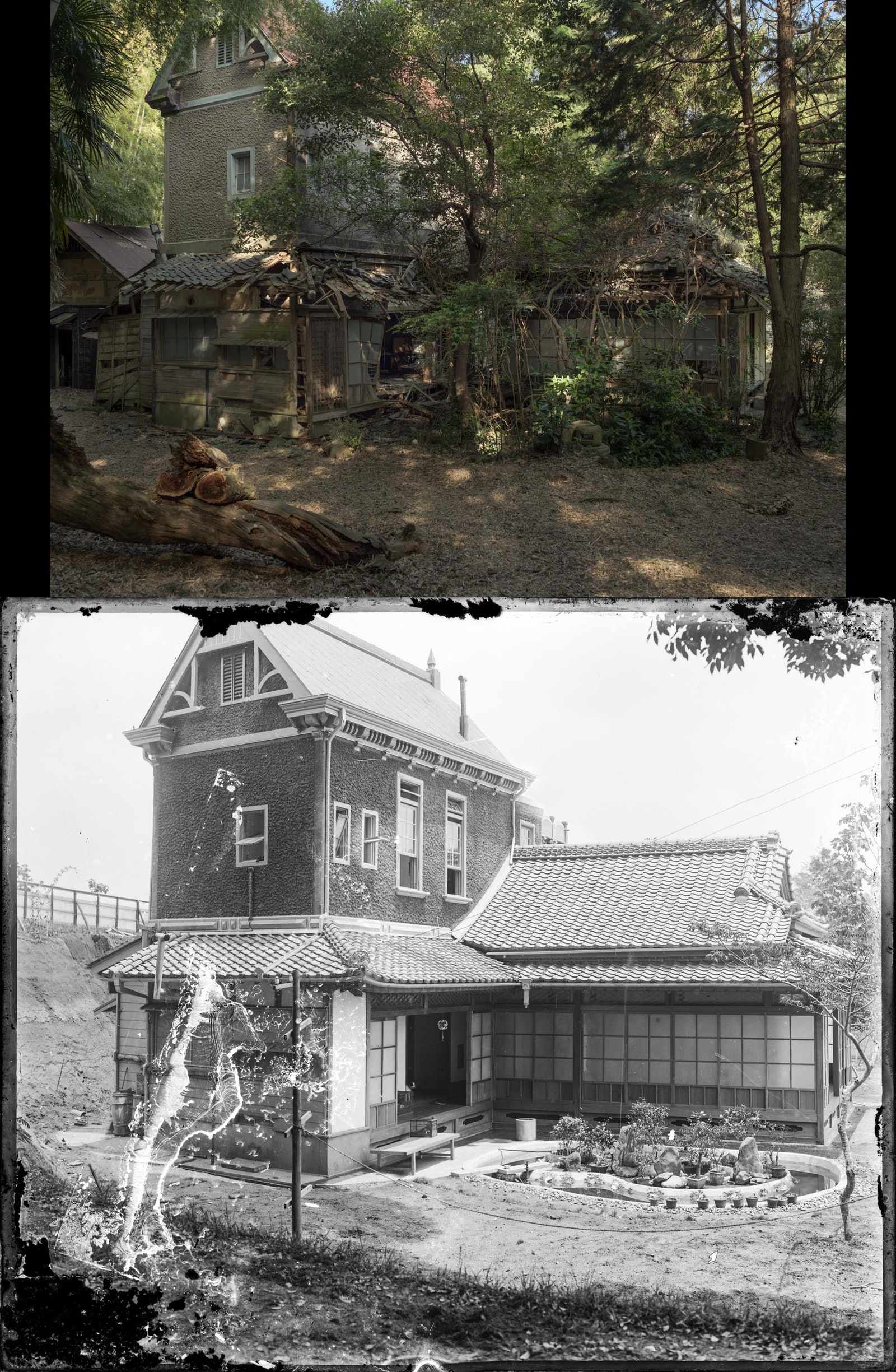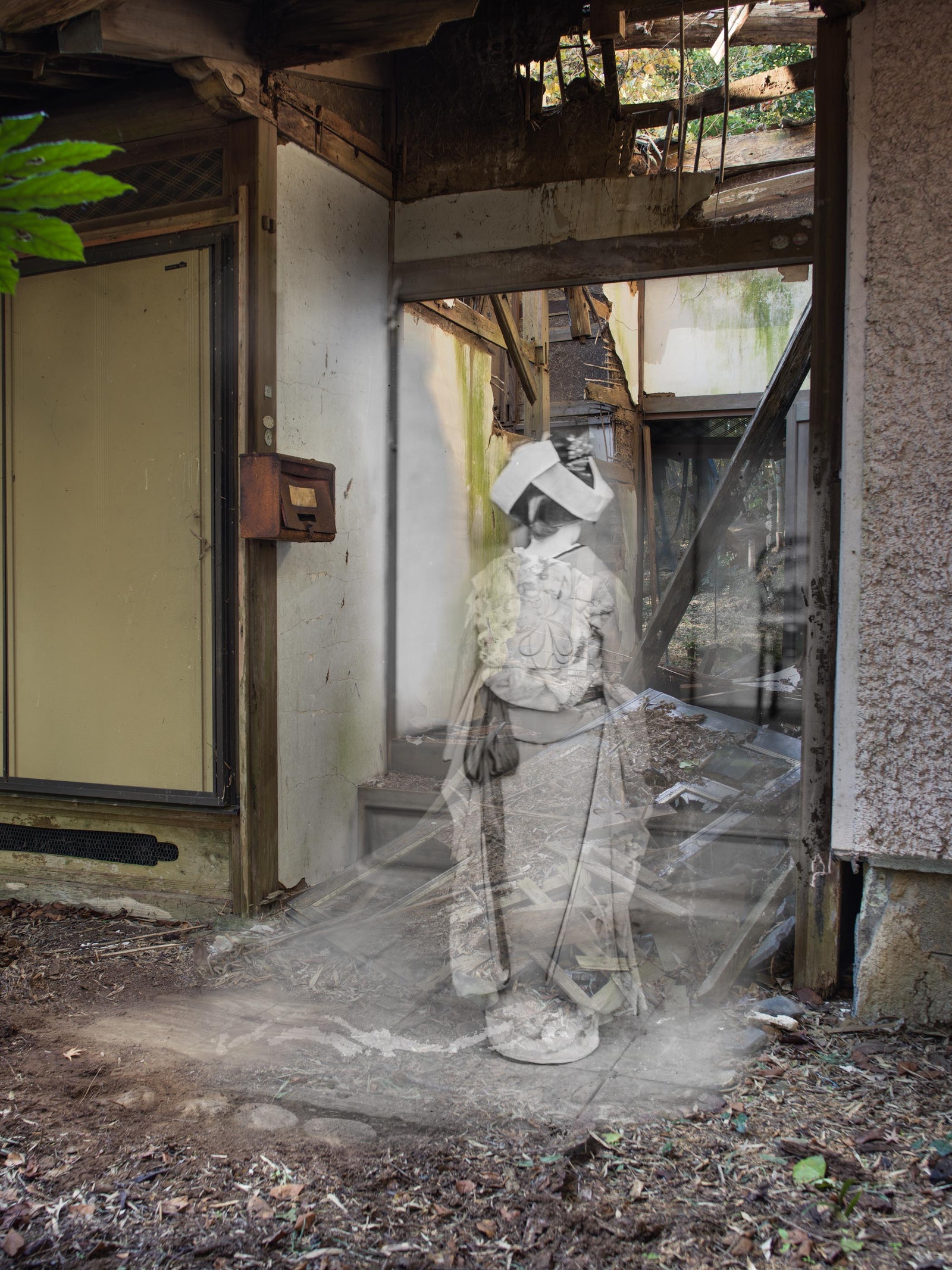 Hamish Campbell thus decided to take some of these glass negatives away in order to scan them and create a series based on a mix of these old photographs and his own modern images: The Taisho Photographer’s House. ‘The fact that these premises still exist, albeit in very different conditions as the house is now in ruins, was an excellent opportunity to connect the past and the present’, the photographer explains in an interview with Pen. ‘This makes it possible to show the humans who previously lived in this space and to connect with the site in its initial form rather than seeing it as a relic or with a slightly unhealthy sense of curiosity.’