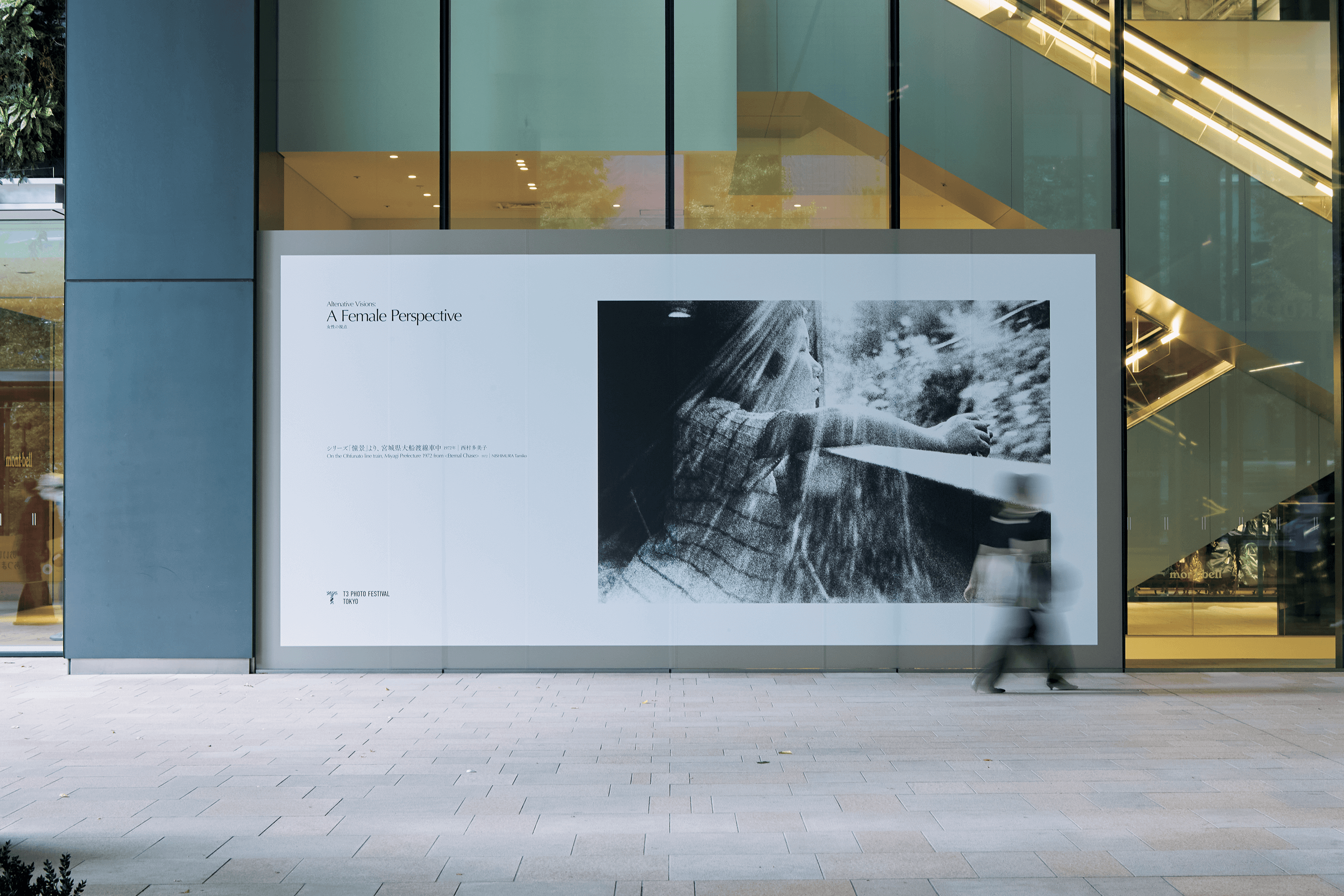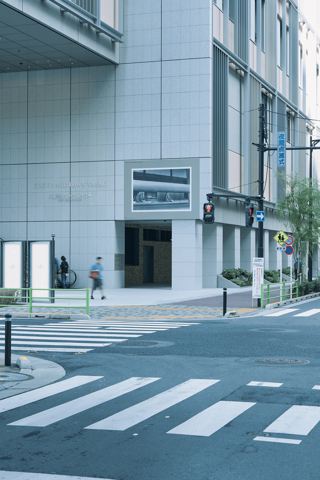 View of the T3 PHOTO FESTIVAL 2024. Tetsuya Ichimura’s work harmoniously integrated with the architecture of the Tokyo Midtown Yaesu façade. Displayed as part of ‘New Japanese Photography in New Light’.