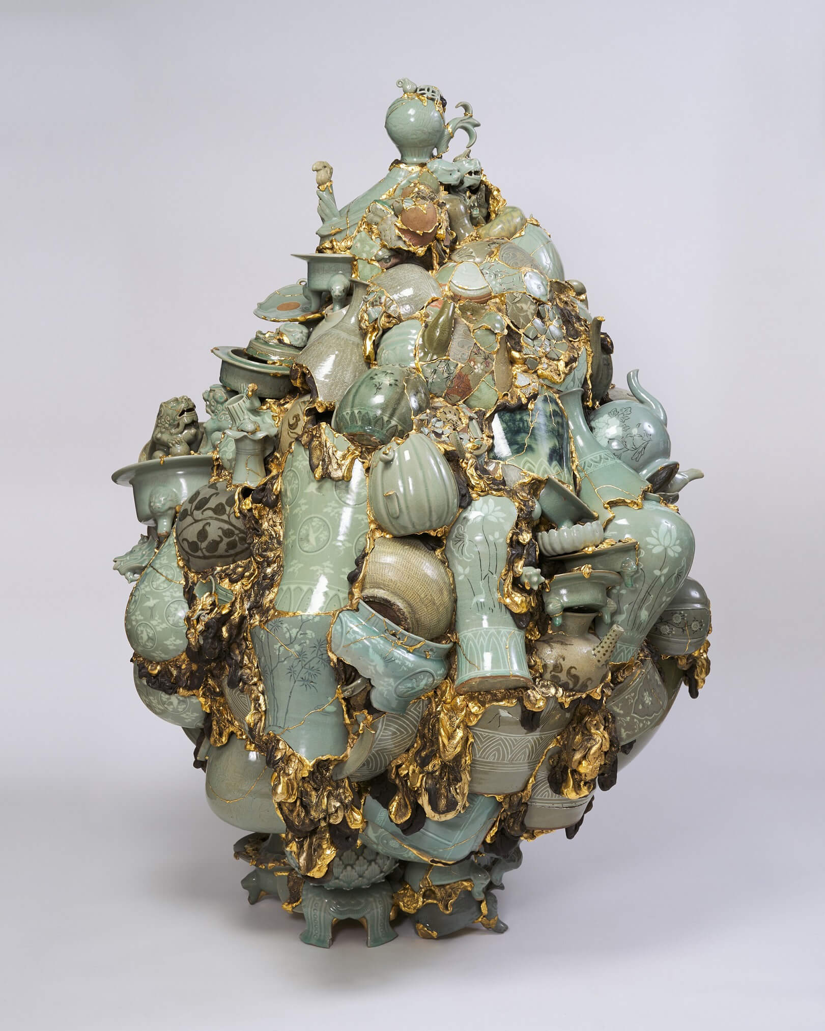 Translated Vase_2019 TVCW 2 (2019) / porcelain & ceramic shards, epoxy, 24k gold leaf / Courtesy of the artist