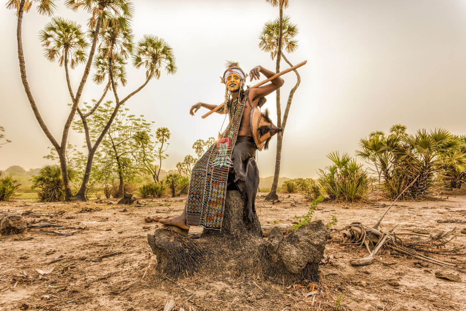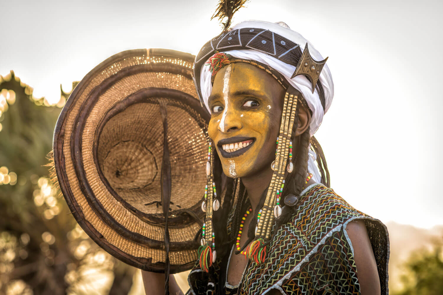 To appeal more to women for Gerewol, each man takes as long as forty-five minutes to paint his face yellow. ©Nagi Yoshida