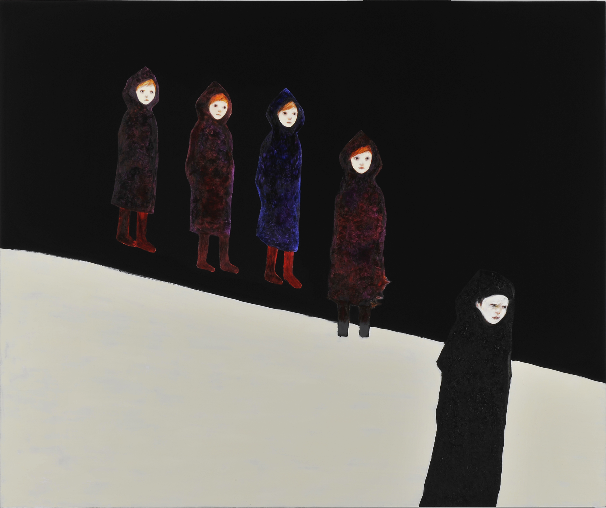 ‘By getting rid of the background, the viewers can focus on the person in the centre of the image.’ These heroines, though figurative, thus find themselves plunged into an abstract world tinged with mystery. Black becomes a character in itself, and participates in the narrative. ‘I think that using the colour black is a form of freedom, because it could transform into anything.’ These are waking dreams, but which remain very much nocturnal. ‘Many of my pieces depict the night. The darkness of the night is also the darkness that makes people feel uncomfortable.’