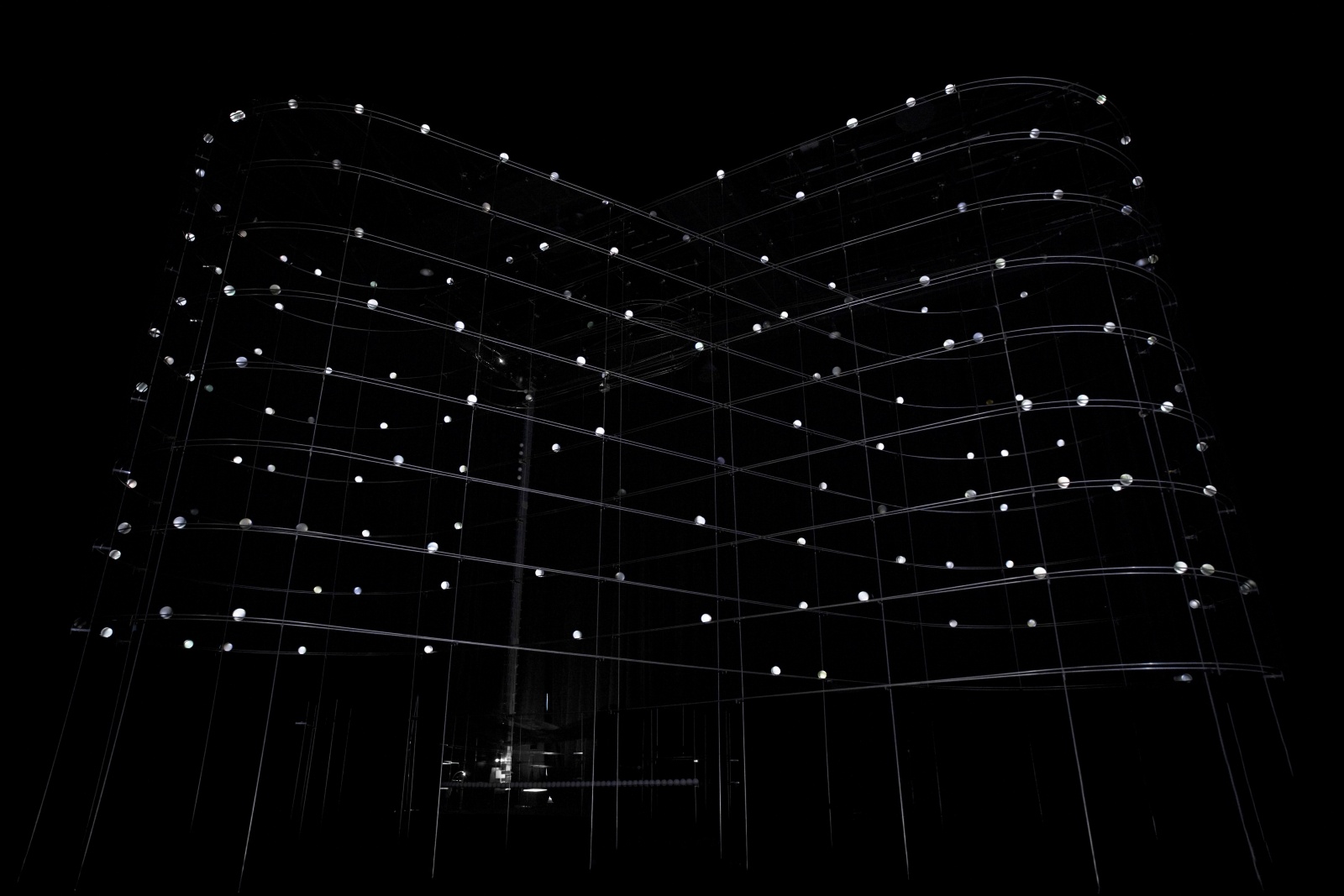 Artists, programmers, DJs, designers, engineers—this duo expertly masters the codes and techniques of new medias. Presented for the first time in 2011 at the Yamaguchi Center of Arts and Media (YCAM) in Tokyo, the installation particles (2011) brings the audience into a world of neo-kinetic participative art.