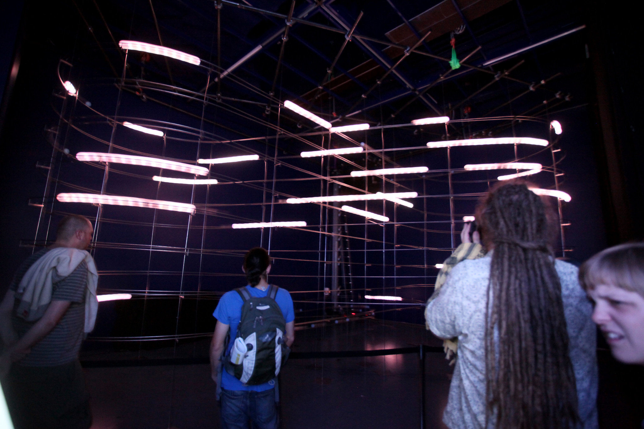 The installation is a live experience determined by choices made by the audience. They are able, via an interface, to guide LED balls in order to form drawings as they move.
