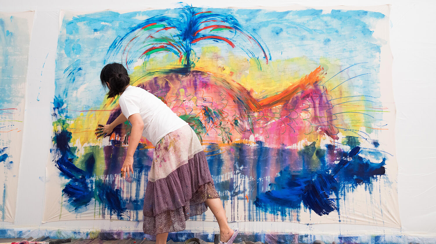 Scenes from Ellie Omiya Live Painting featuring Yuichi Ohata during the exhibition Sincerely Yours, at the Towada Art Centre (2016) Photo: Alex Queen | Michael Warren