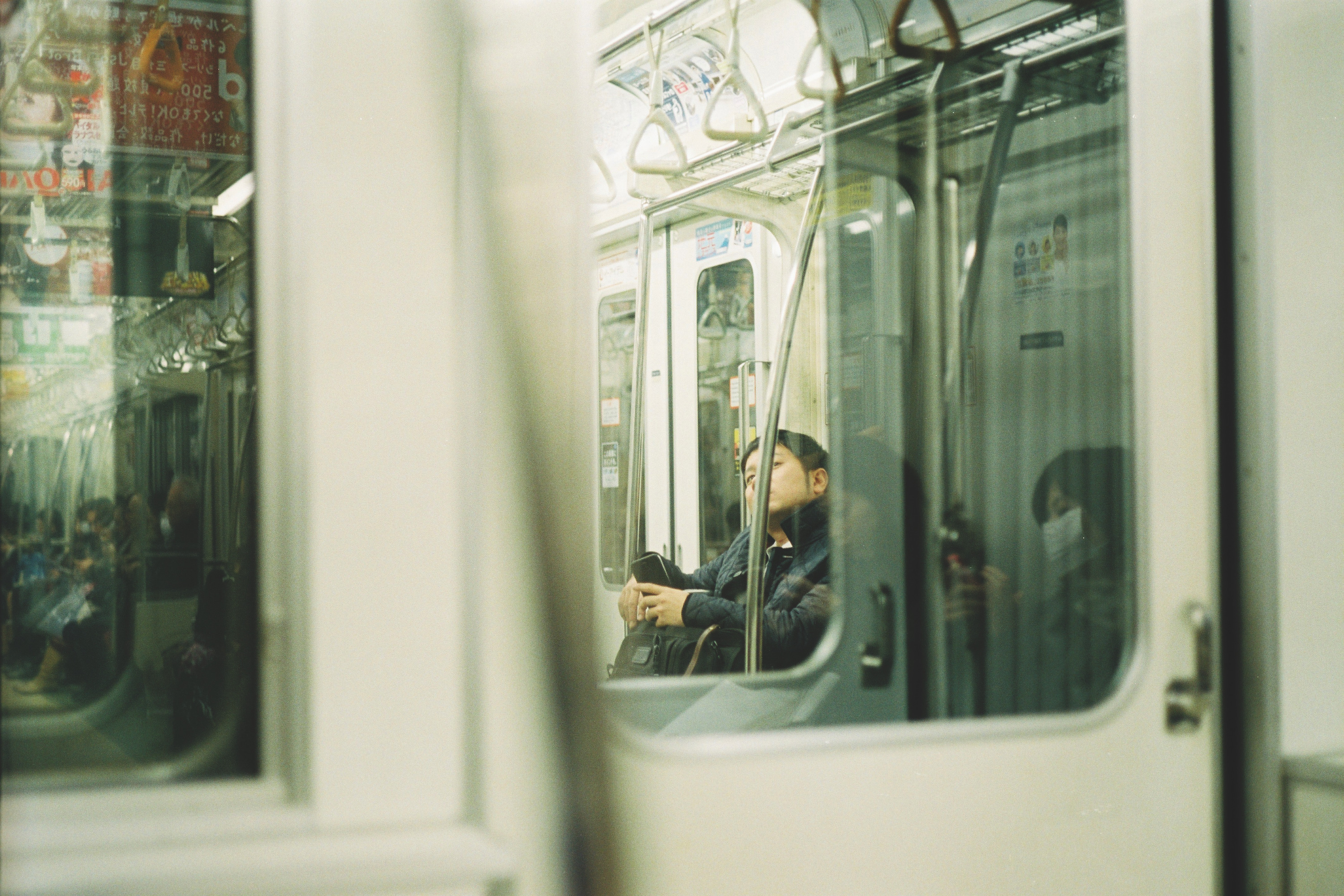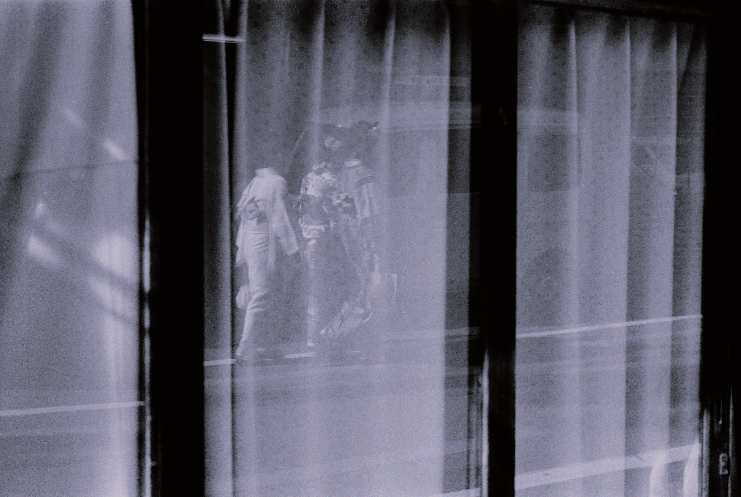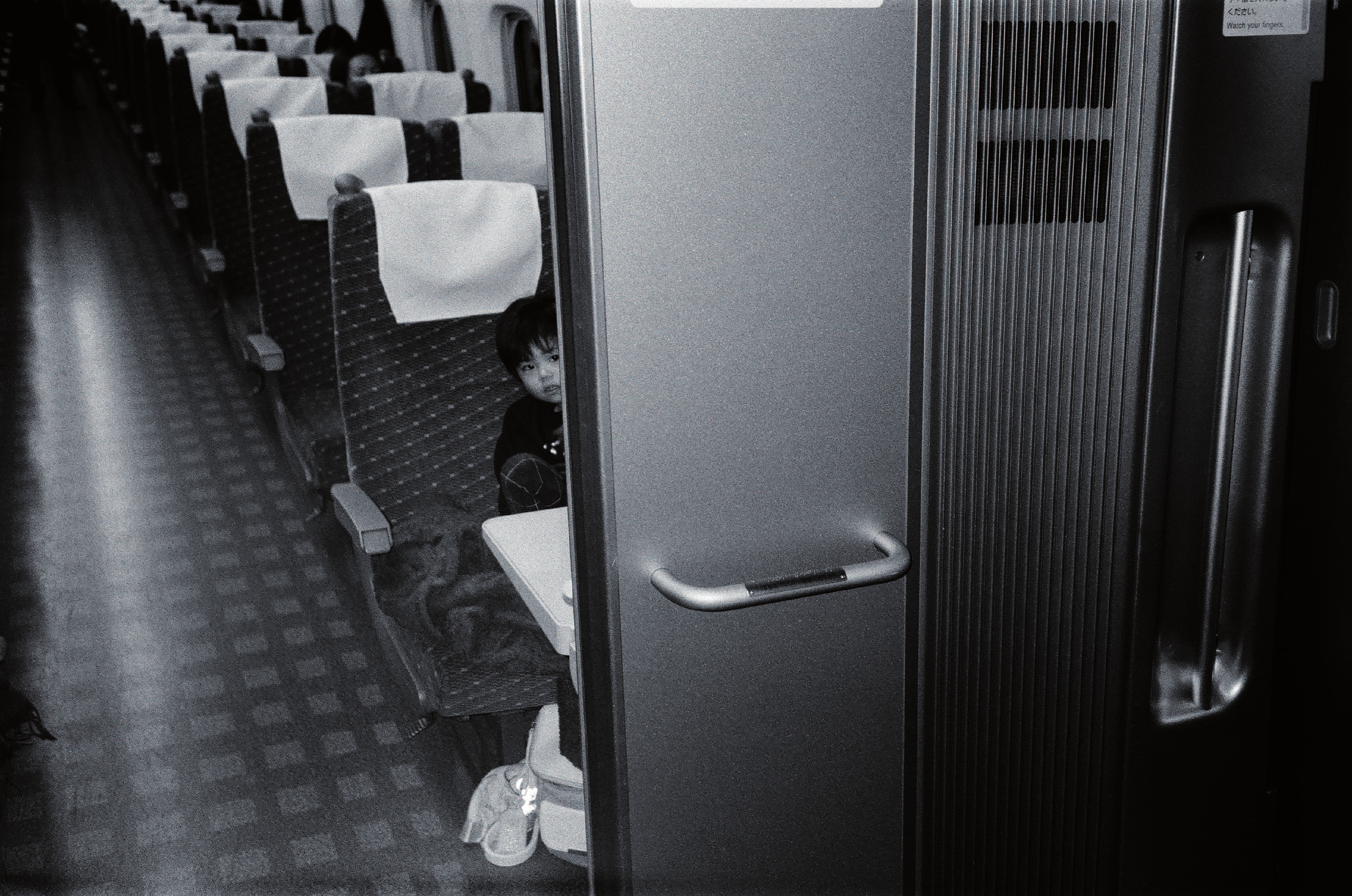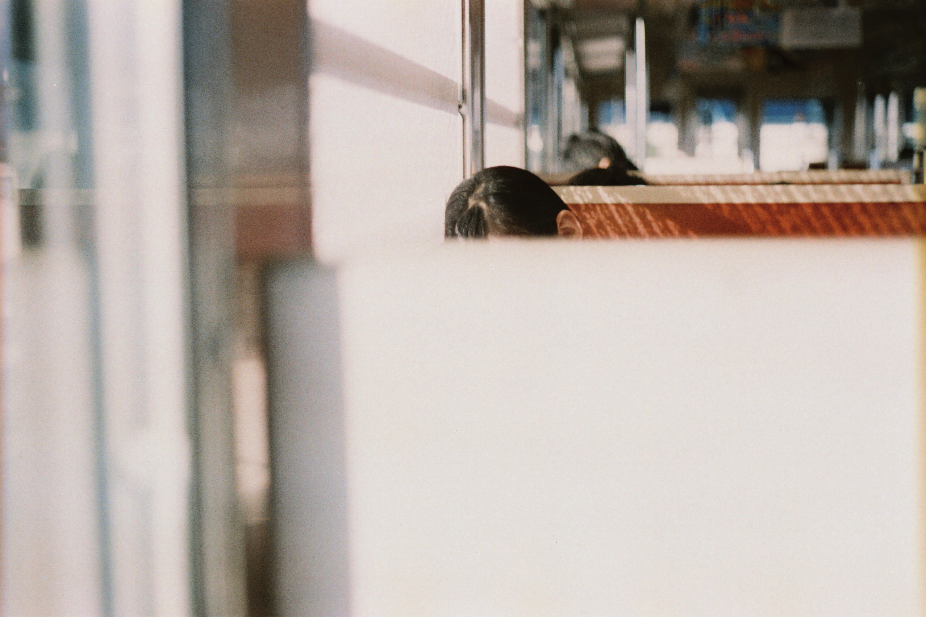 This discreet piece of equipment allows him to take photographs stealthily. The rendering is extremely natural and gives the viewer the impression of being an individual in Japan among other Japanese people, enthralled by the poetry of the everyday. For those who have visited the country before, these photographs revive memories and sensations, like the heavy silence and motionless waiting on public transport. The subjects are rarely captured face-on, but rather from behind or from a distance, and sometimes through windows or curtains. This is a deliberate act on the photographer’s part.