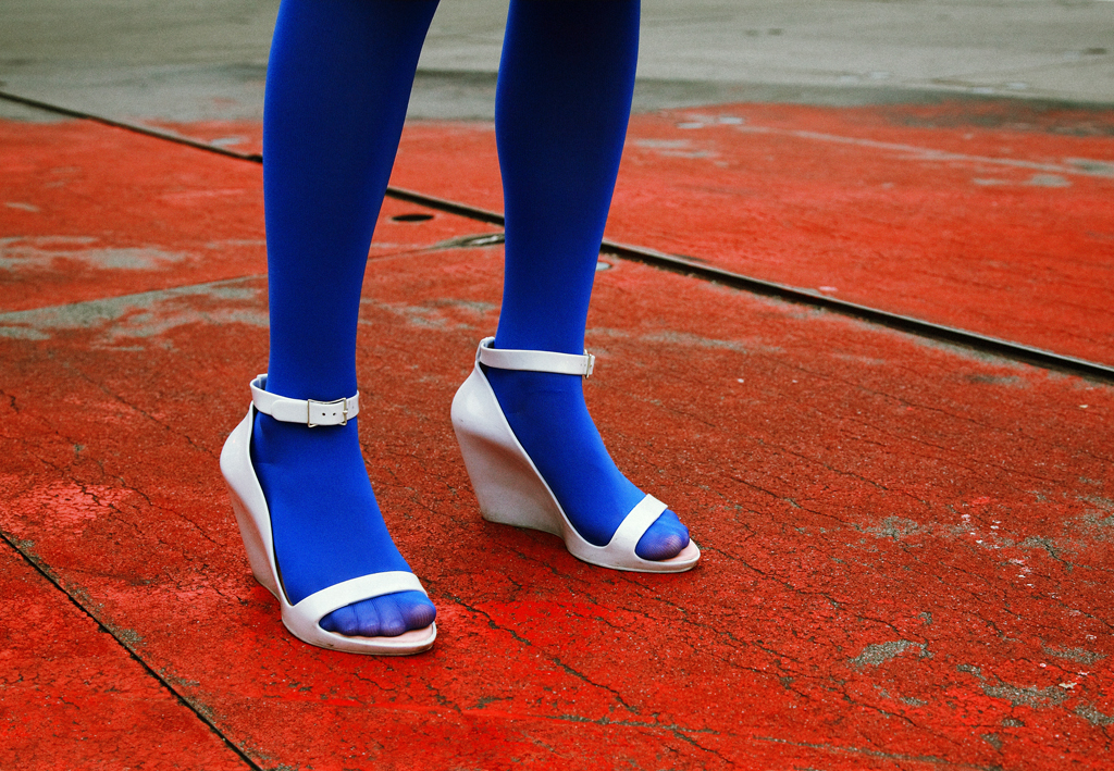 From urban to more traditional styles, featuring long socks, high heels, or revealing just part of the feet under a floral dress, the photographs in the series could be considered more eclectic than a series of portraits, as each one encourages the viewer to guess the age, social class, style, and character of the woman in question.
