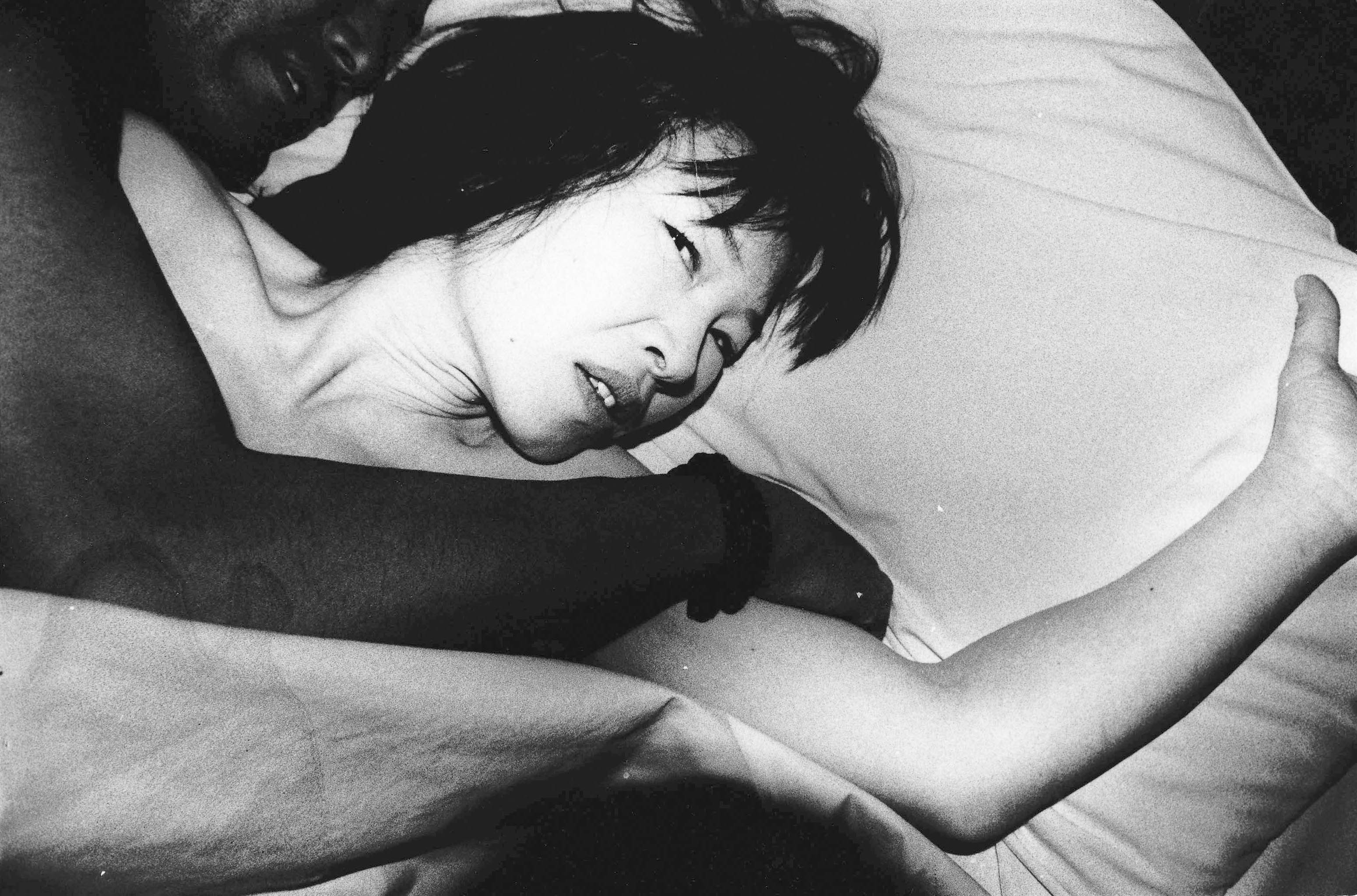 The first part of the series, in black and white, shows Hideka Tonomura’s mother next to her lover. The artist does not show the face of the latter, instead focusing the viewer’s attention on that of her mother. These photographs, somewhere between an intrusion on privacy and a personal archive, cause her to stand to the side, above the couple, who appear to be in the throes of lovemaking.