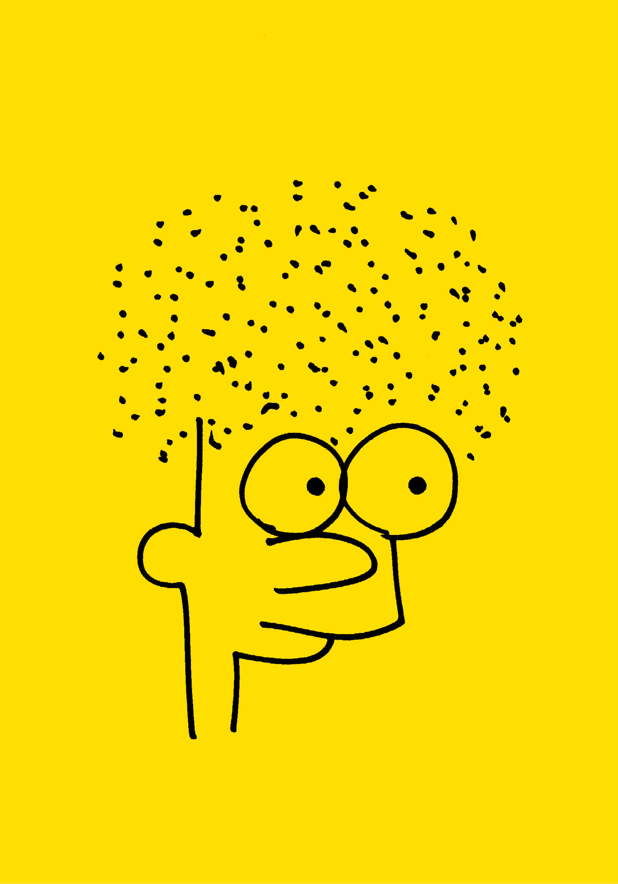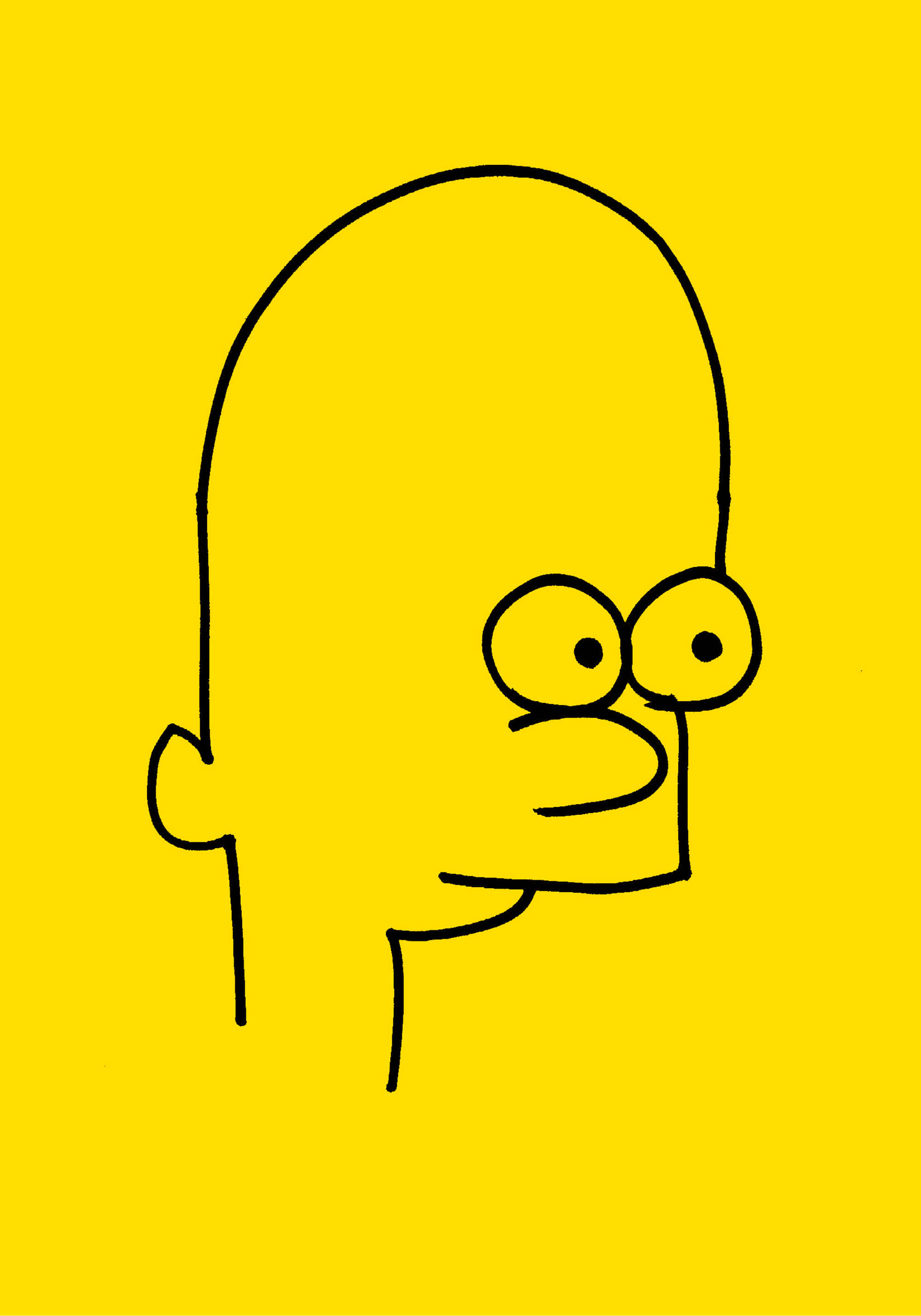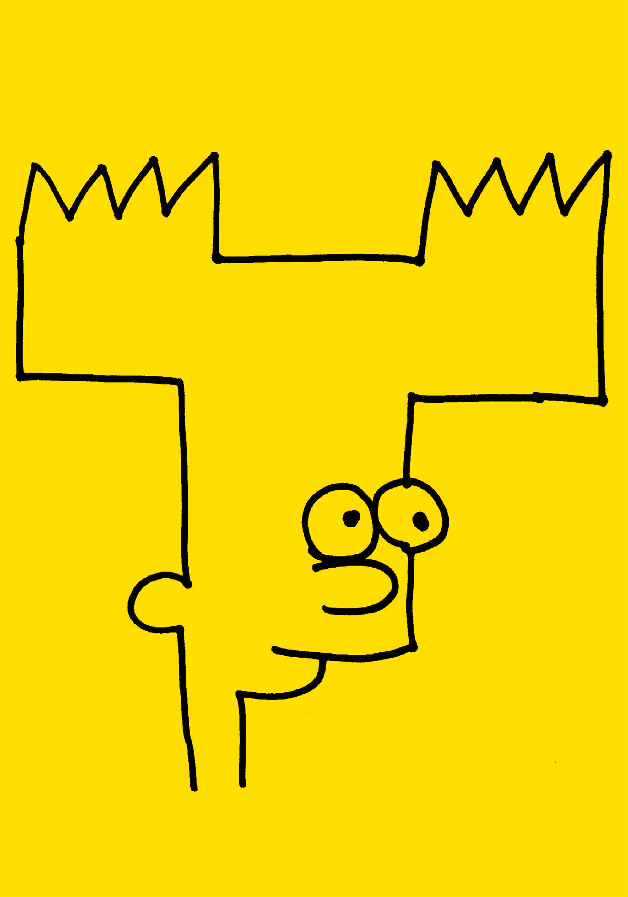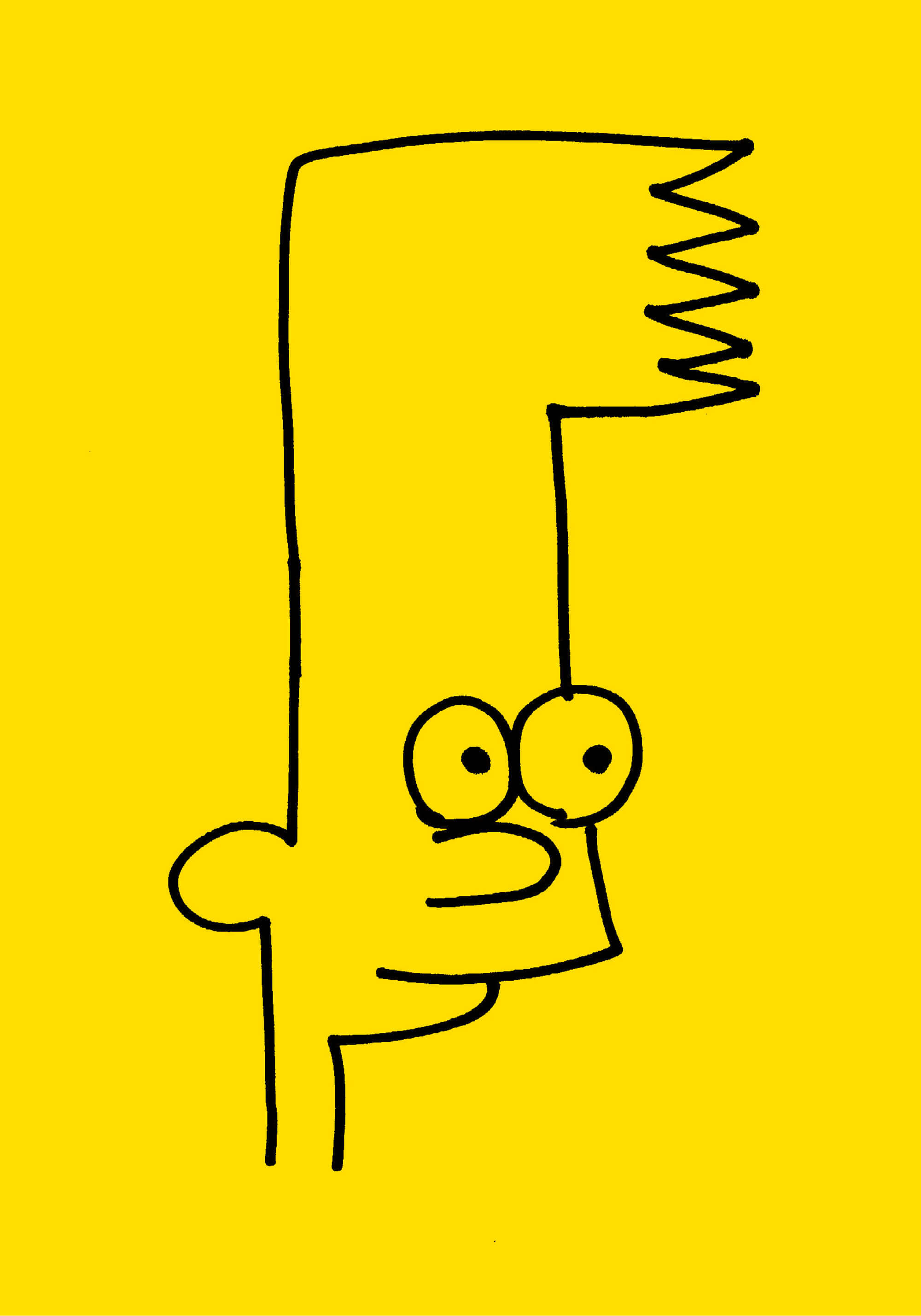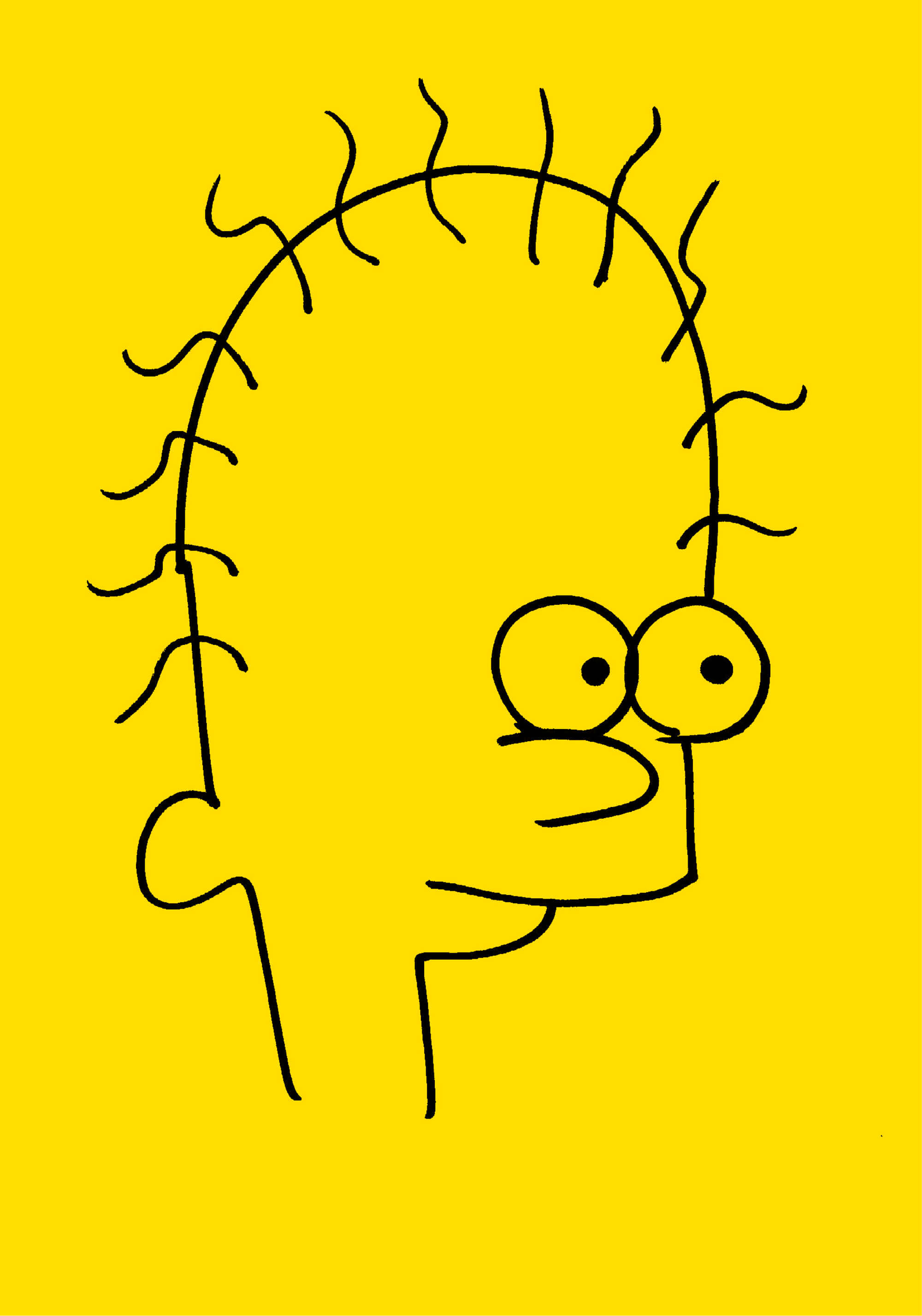 Although the structure of the face—the eyes and lips—remains identical, the artist lets his pen run wild and distort Bart’s outline: sometimes he ends up bald, and at other times with a thick column of hair, when the top of his head isn’t taking on all the different geometric shapes possible.