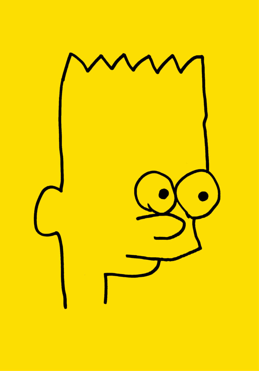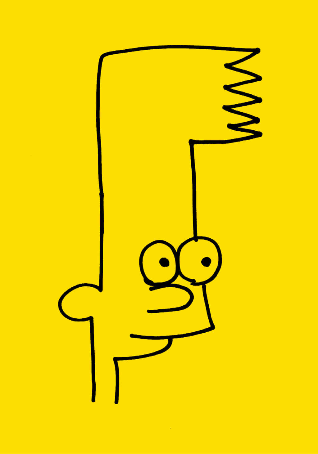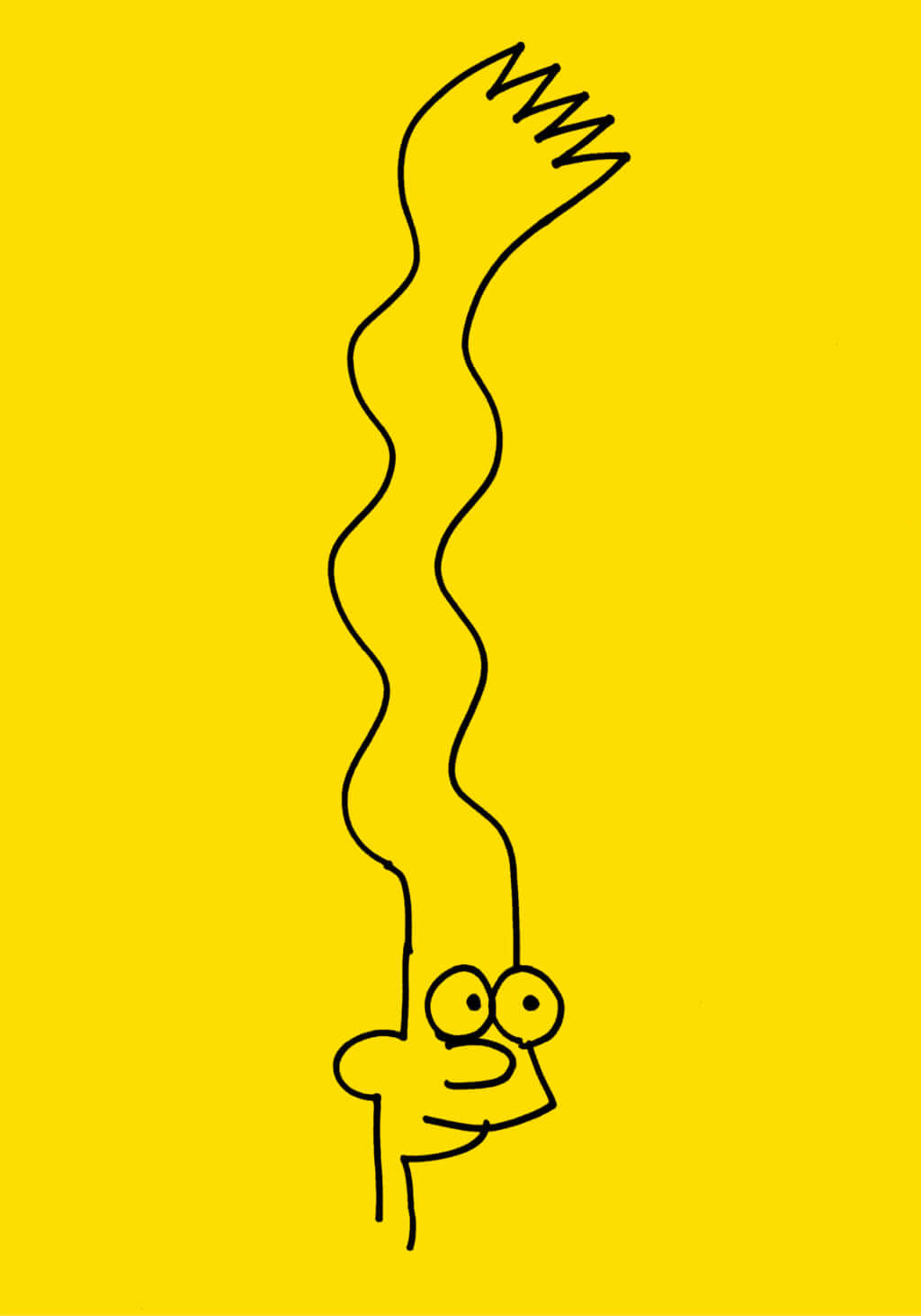 Although the structure of the face—the eyes and lips—remains identical, the artist lets his pen run wild and distort Bart’s outline: sometimes he ends up bald, and at other times with a thick column of hair, when the top of his head isn’t taking on all the different geometric shapes possible.
