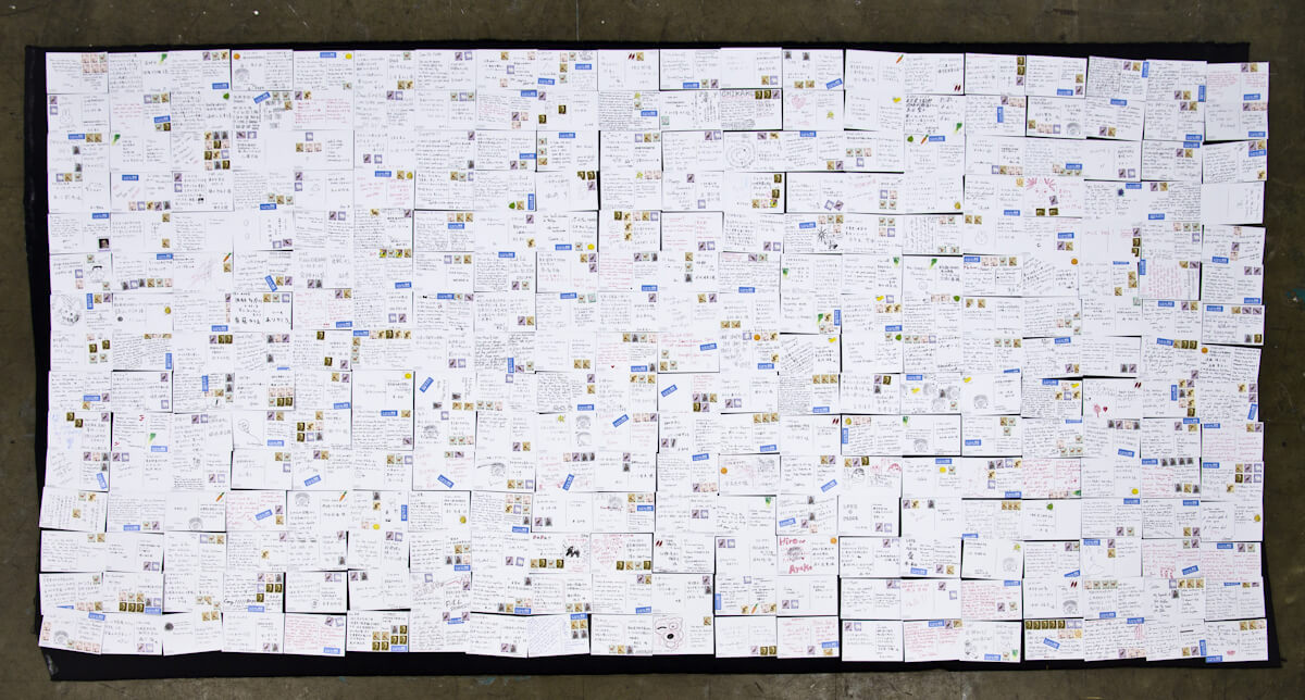 Alongside the exhibited photographs, an installation completes the scene, presenting 500 postcards that serve as an ongoing performance. Gui Martinez invites visitors to fill in postcards that he will then send. The idea was to allow ‘everyone who came through the show to connect with whoever they wanted, anywhere, whilst being inspired by the images exhibited and this concept of nostalgia that I tried to portray and re-create.’