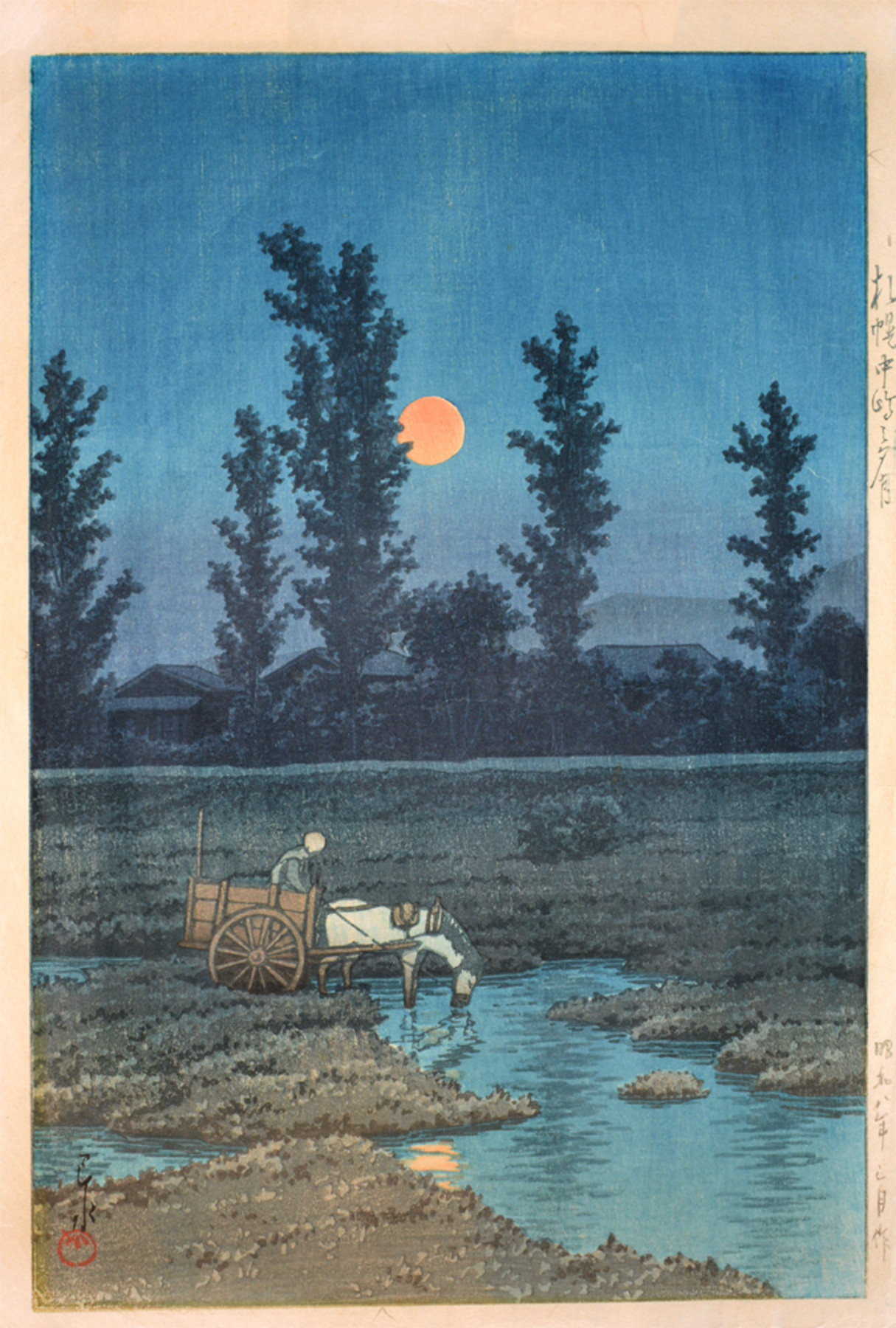 Hasui Kawase, ‘Evening Moon at Nakanoshima, Sapporo’ (1933) — courtesy of Ronin Gallery.