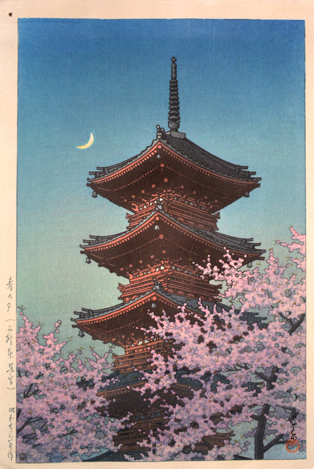 Hasui Kawase, ‘Spring Evening at Toshogu in Ueno’ (1948) — courtesy of Ronin Gallery.