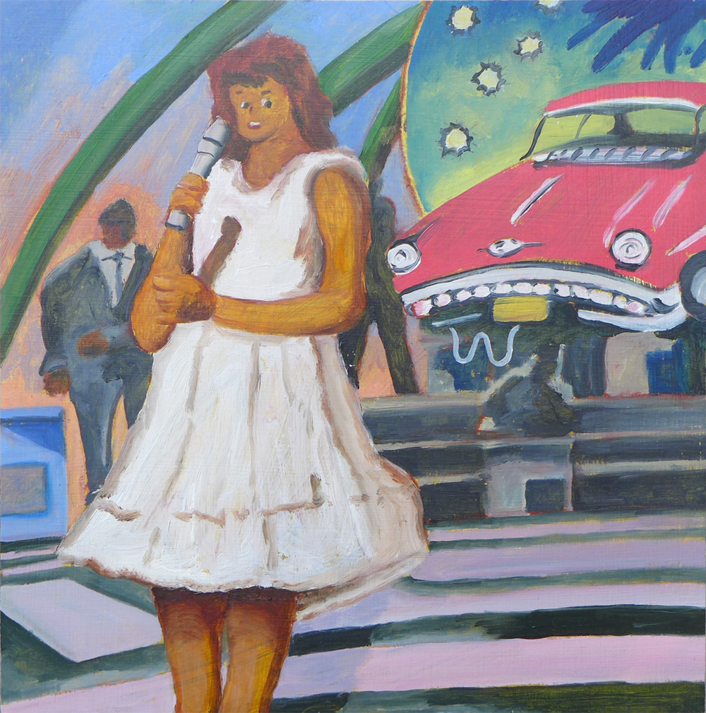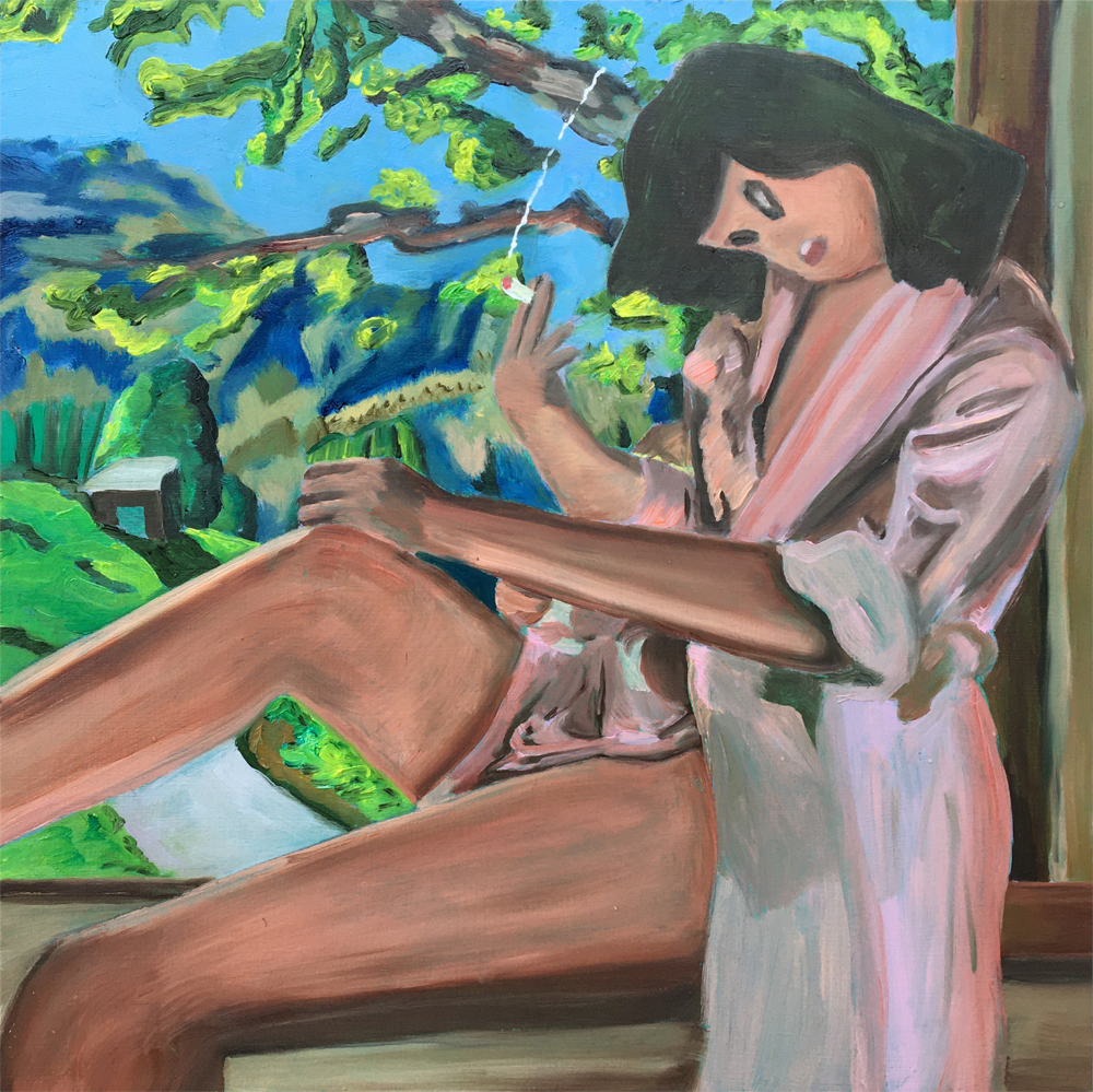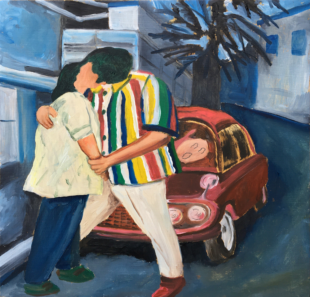 What is this woman smoking a cigarette thinking about that makes her look so surprised? Are these embracing lovers really in love? By playing with facial expressions, the colours of the landscapes, and the codes of seduction, the painter invents strange, amusing tales and invites the viewer to do the same. Sometimes, however, Hiroya Kurata’s pieces become sensitive and touching. In When mother was young, the artist’s first solo show, held at the American gallery Over the Influence in October 2020, the notions of family, filial love, and childhood were dominant.
