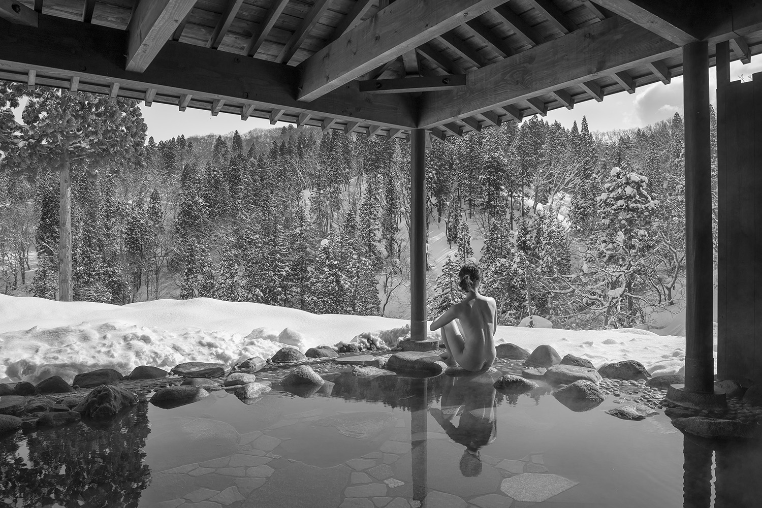 From Yufuin to Kyushu, Noboribetsu and Hokkaido via Takaragawa in Gunma Prefecture, Arima in Hyogo Prefecture, and Nyuto and Ginzan in the Tohoku region, Mark Edward Harris’s camera captured over one hundred onsen. The photographer, who works for publications including National Geographic Traveller, Geo, and the New York Times, mainly took photographs of his friends and acquaintances so that the images would be as natural as possible. ‘I think black and white best conveys the feeling of the onsen experience. The idea wasn’t to create images you would find in a brochure, with models whose appearance has been altered, but rather to create artistic impressions of the experience rooted in authenticity.’