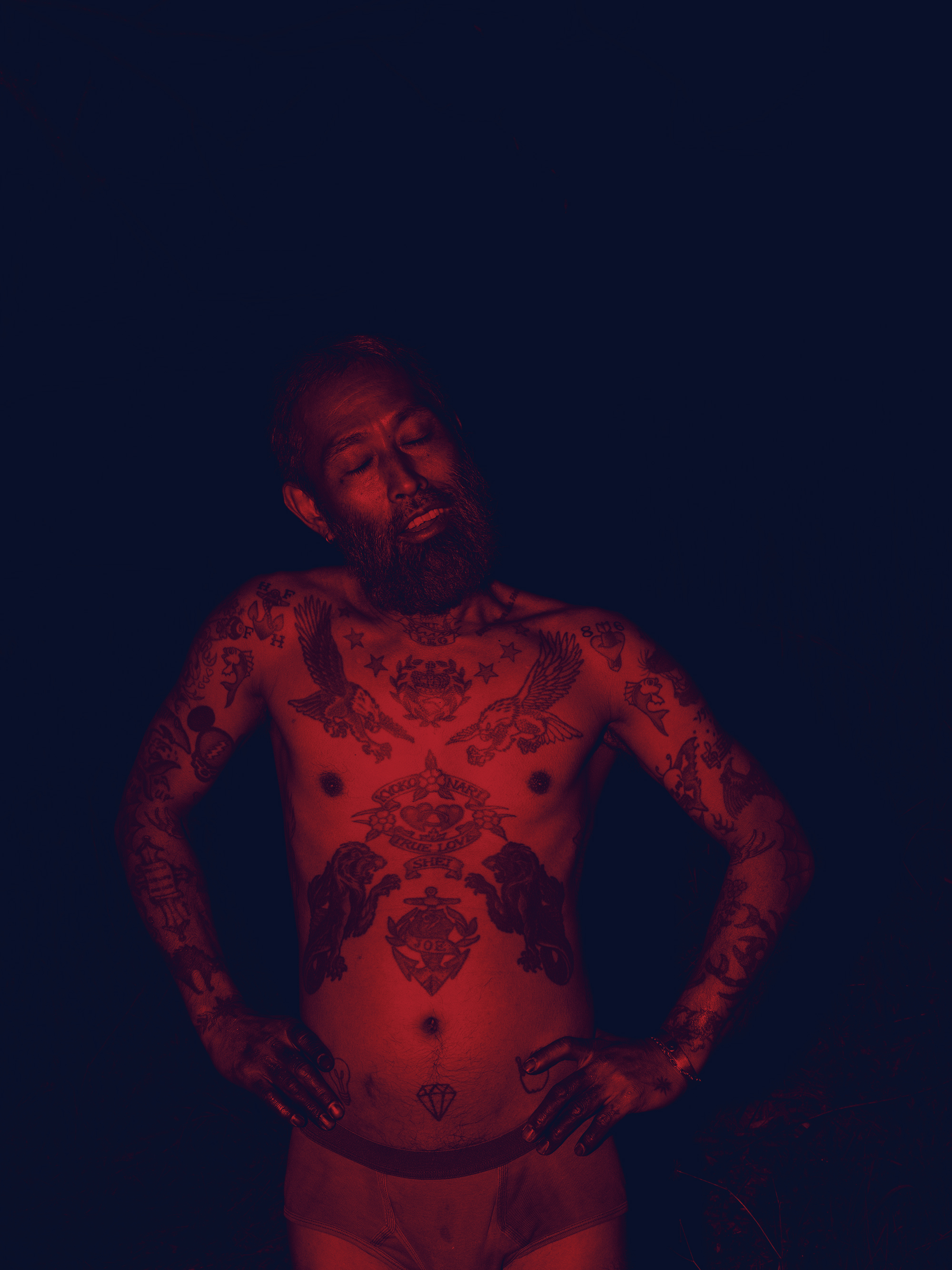 Each portrait has a name: Ittan, Kappa, Kami, Kitsune, Tanuki… These are the protagonists in Japanese mythology. These strange photographs are bathed in a blood-red light that prevents the viewer from distinguishing the details. They are plunged straight into a supernatural, worrying universe. Łukasz Rusznica tells the viewer no more; it is up to them to do the work, to go beyond these divinities and discover their story. ‘I hope the images are sufficiently suggestive and that they provide a foundation to fill them with my own meanings, my own stories, and that’s possibly even more interesting for me than trying to deconstruct why Kitsune have tails where they do in my photos… or why the Tanuki is so terribly thin.’ All of them are scattered through the environment: ‘Rain, trees, bulrushes, and, of course, the people who make the monsters [laughs].’