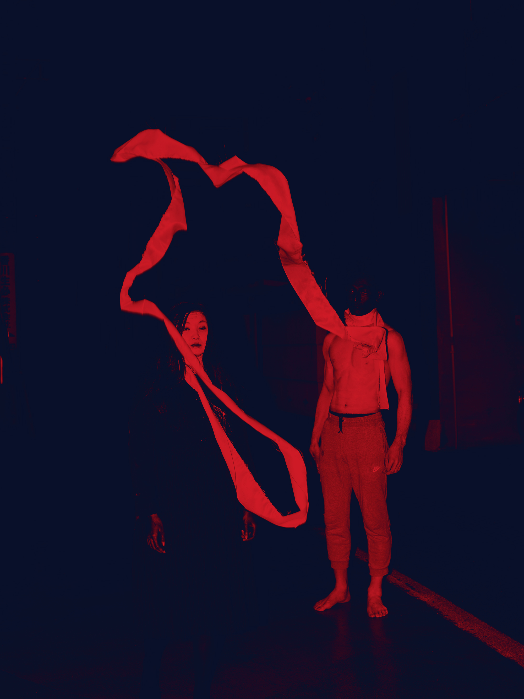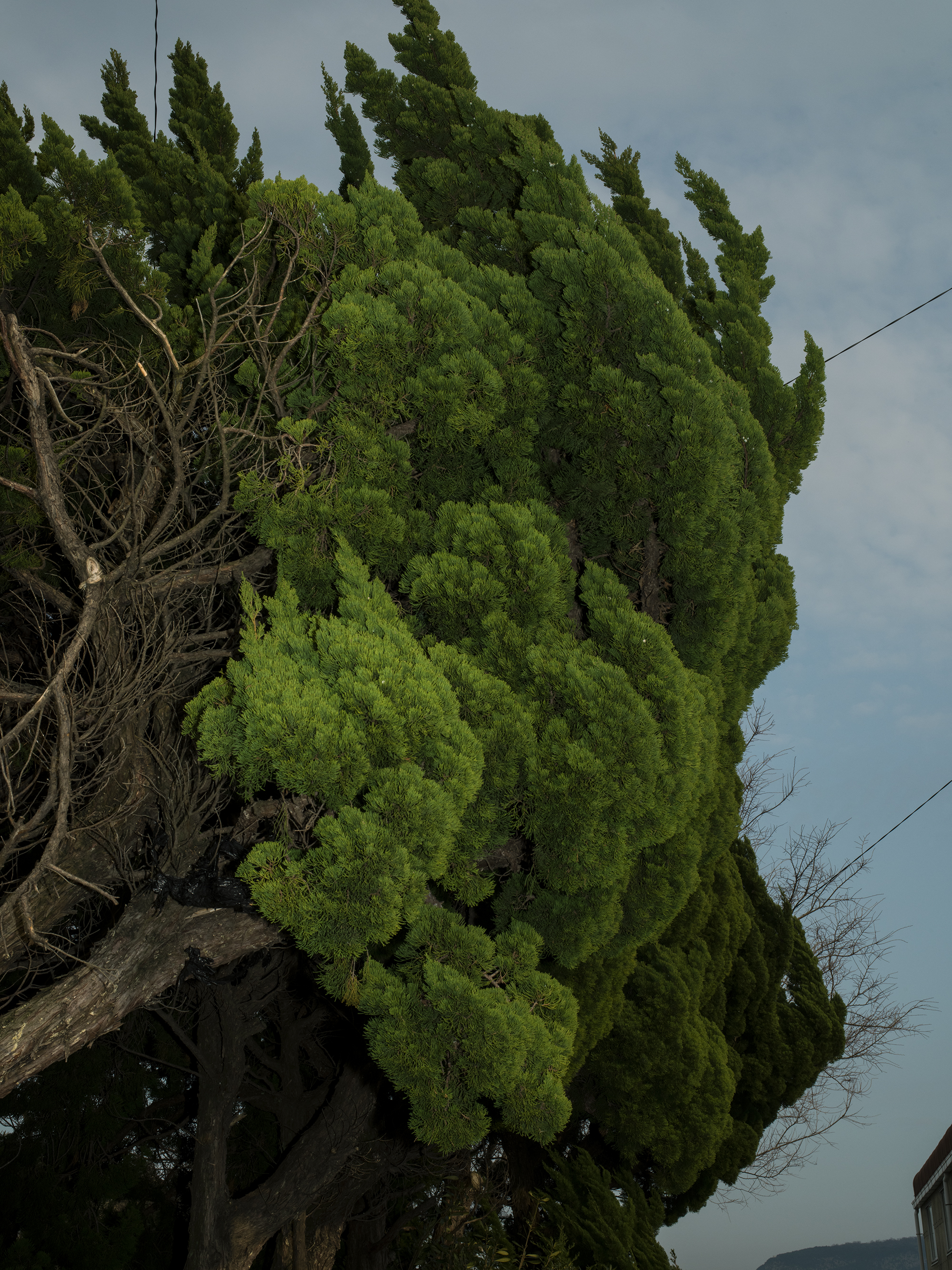 Mythology, of all origins, on the border between the secret and the sacred, captivates Łukasz Rusznica. It is a narrative that is familiar to him, that fascinates him and that opens a window onto other cultures, like Japanese culture in this instance. In Japan, he discovered spirits and deities, supernatural creatures. ‘I wanted to photograph yokai, legendary monsters‘, he explains, figures that represent far more than fanciful stories, and that have forged an identity over the centuries. ‘What I really like is how in Japan, mythology is still a living, changing organism that is open to interpretation and constantly updated.’ It has a real influence on nature and the lives of people, as was written by Japanese philologist Motoori Norinaga, who the artist quotes before adding, ‘What I found crucial when working on the series, and what are clearly part of Shintoism, are kami (gods, spirits, rules, places).’ Here, however, the focus is placed on human processes rather than on a Shinto religious system.