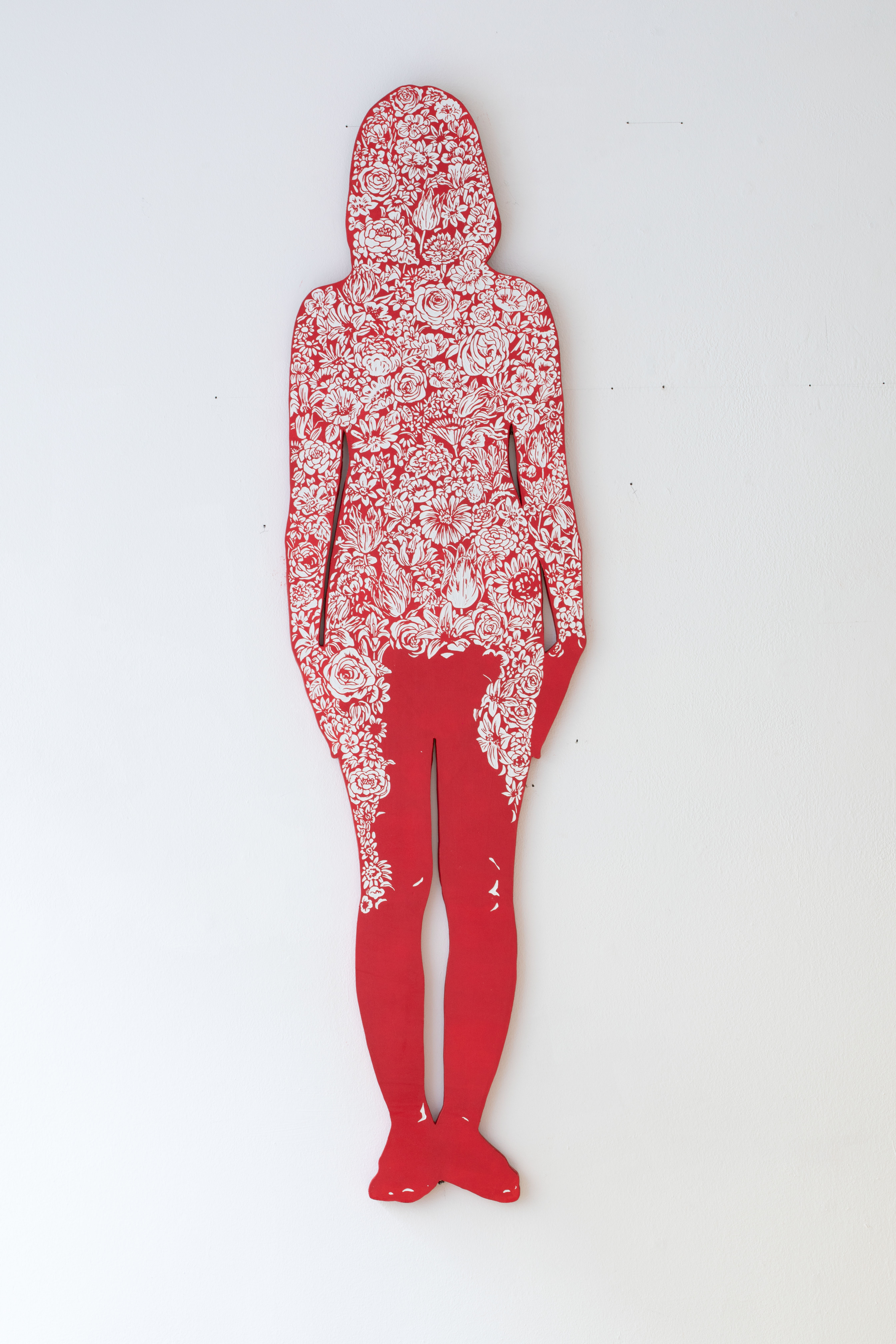 The use of red is also a key marker of the artist’s work. This choice leads the viewer to wonder about the dark side of his pieces, which, at first glance, might appear innocent and candid. ‘Red is my favourite colour. […] And red is beautiful and powerful. I feel that it is the colour of blood and represents life force’, Kenichi Yokono continues.