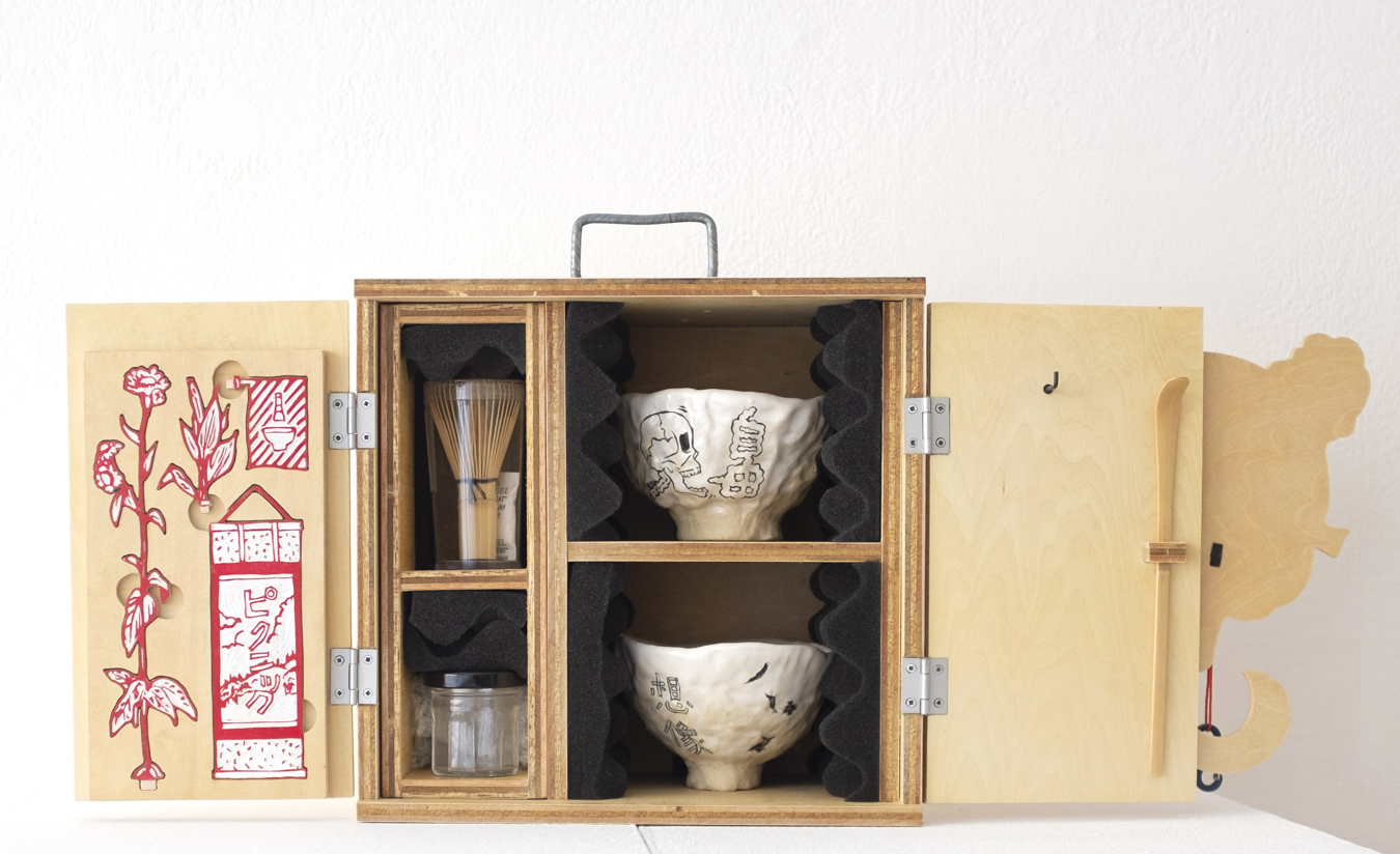 With regard to the evolution of his work, his gallery manager Michele Vitucci explains, ‘the new works are more three-dimensional. This is achieved by adding a frame to his woodcut panels. One particular work is an outdoor tea ceremony set, where Yokono has ventured into ceramic making by creating the tea bowls.’