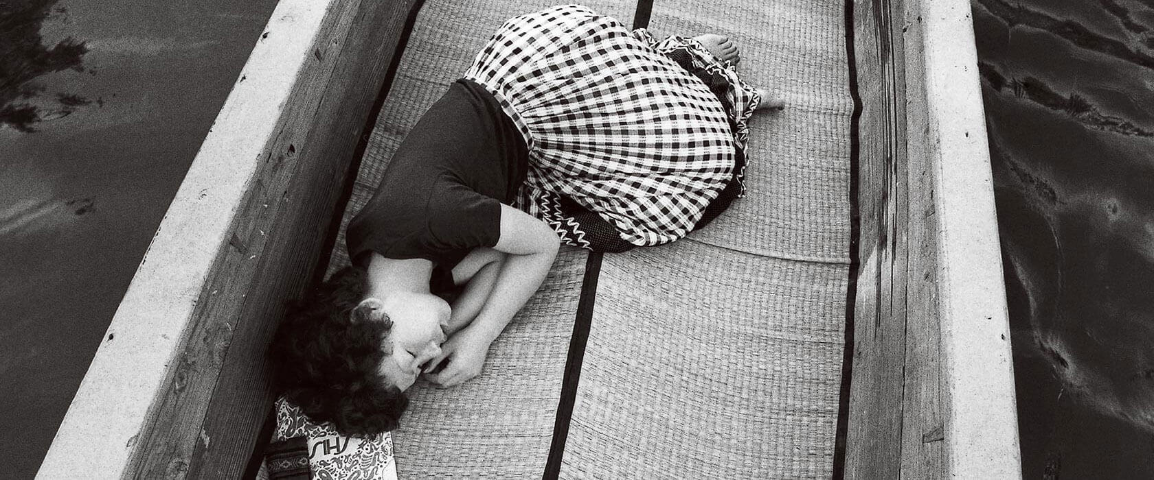 Some photos in the book have text written by Yoko. The book also includes works from 'Sentimental Journey' and 'Sentimental Journey Continued: Okinawa'. 'It (above) is like crossing the Sanzu River in the afterlife, isn’t it? We'll see it in the future. And there's kind of a foetal look to it. It's mysterious--I didn’t really mean to be like that. It’s just a slice of everyday life--you can find the word Shiseido there. You could call the mixing of the joy of life and premonition of death a masterpiece. The picture below was taken by my best student. I make people take good pictures', he laughs.