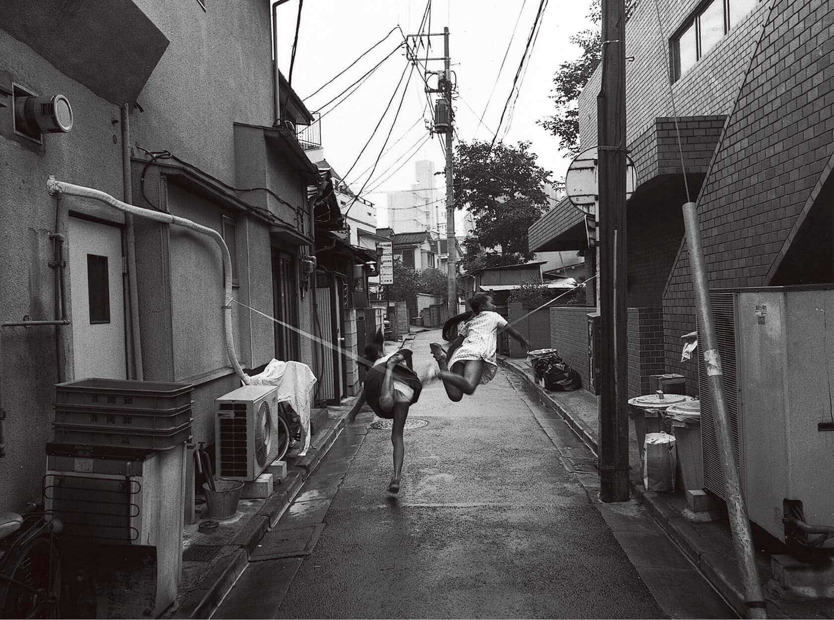 While at university, Araki often took pictures of the children near his home. 'I could see my own childhood in the boy called Sacchin', he said. It was where 'Photographs of Me' began, which convey who he is through others. He continued, 'I was taking pictures from the point of view of a child. The sort of brat who aimed and fired a catapult at me but didn't actually have anything loaded in it'. The quality of these shots of active children can be surprising. He was awarded the Sun Prize for the series, which was his big break.