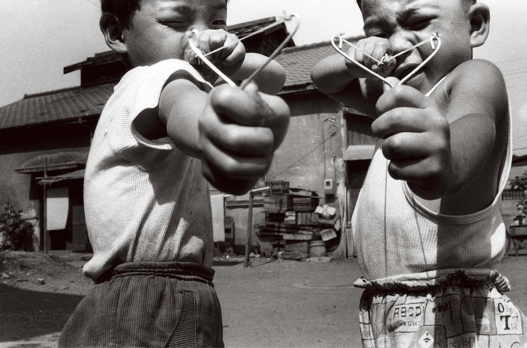 While at university, Araki often took pictures of the children near his home. 'I could see my own childhood in the boy called Sacchin', he said. It was where 'Photographs of Me' began, which convey who he is through others. He continued, 'I was taking pictures from the point of view of a child. The sort of brat who aimed and fired a catapult at me but didn't actually have anything loaded in it'. The quality of these shots of active children can be surprising. He was awarded the Sun Prize for the series, which was his big break.