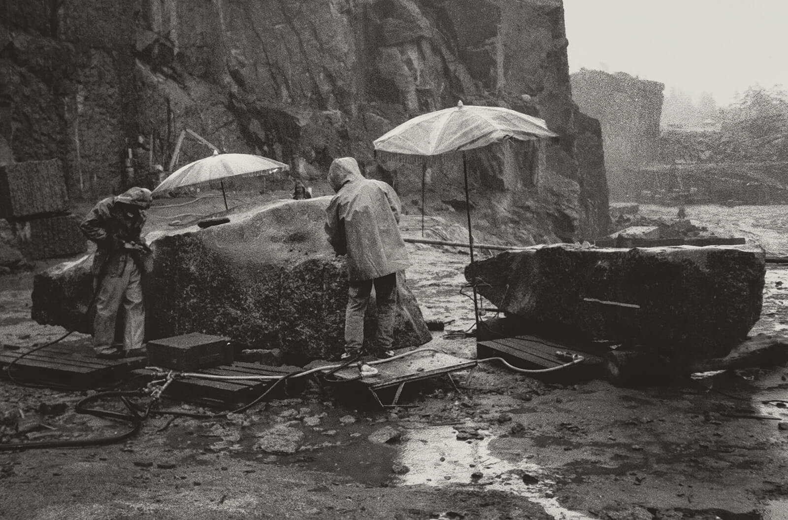 In the pages of the book, the reader discovers the quarry in its gigantic proportions, the stone fragments extracted from a monolithic block to be chiselled, polished, and crafted by the artist. Through rock, the life of Makoto Fujiwara and the main theme of his work take shape. Sculpting the monumental to question one’s place or way of being in the world, sculpting alone while being fully aware of the collective that is required to reach the end point of the project. Stones were at the heart of Makoto Fujiwara’s existence, and his life came to an end among them when he passed away in 2019, in the quarry in Norway where he worked.