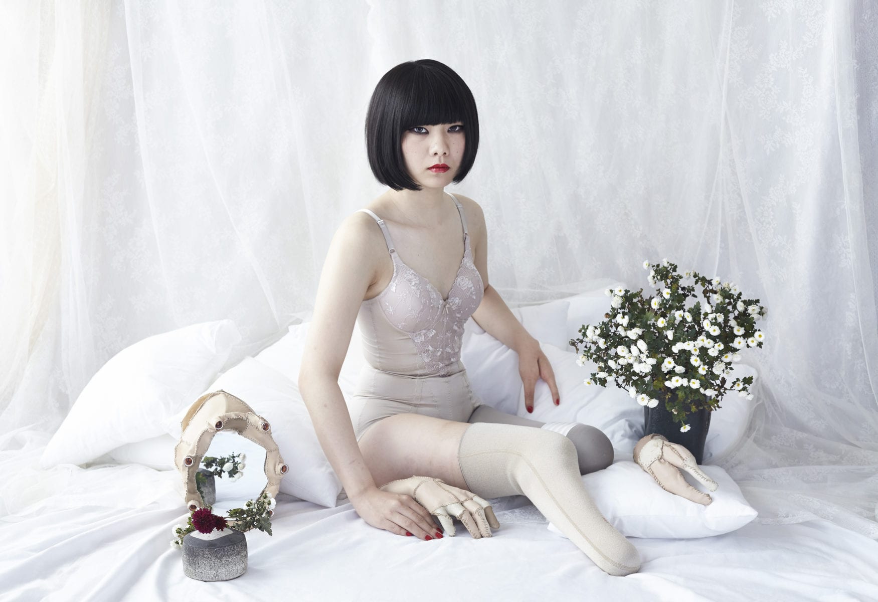 Born in 1987, the artist suffers from tibial hemimelia, an illness that prevented the growth of her legs and of her left hand, where she has only two fingers. When she was nine years old, both of her legs were amputated and she had to wear protheses. Having graduated from the Department of Intermedia Art at Tokyo University of the Arts in 2012, she went on to participate in the 2019 Venice Biennale.