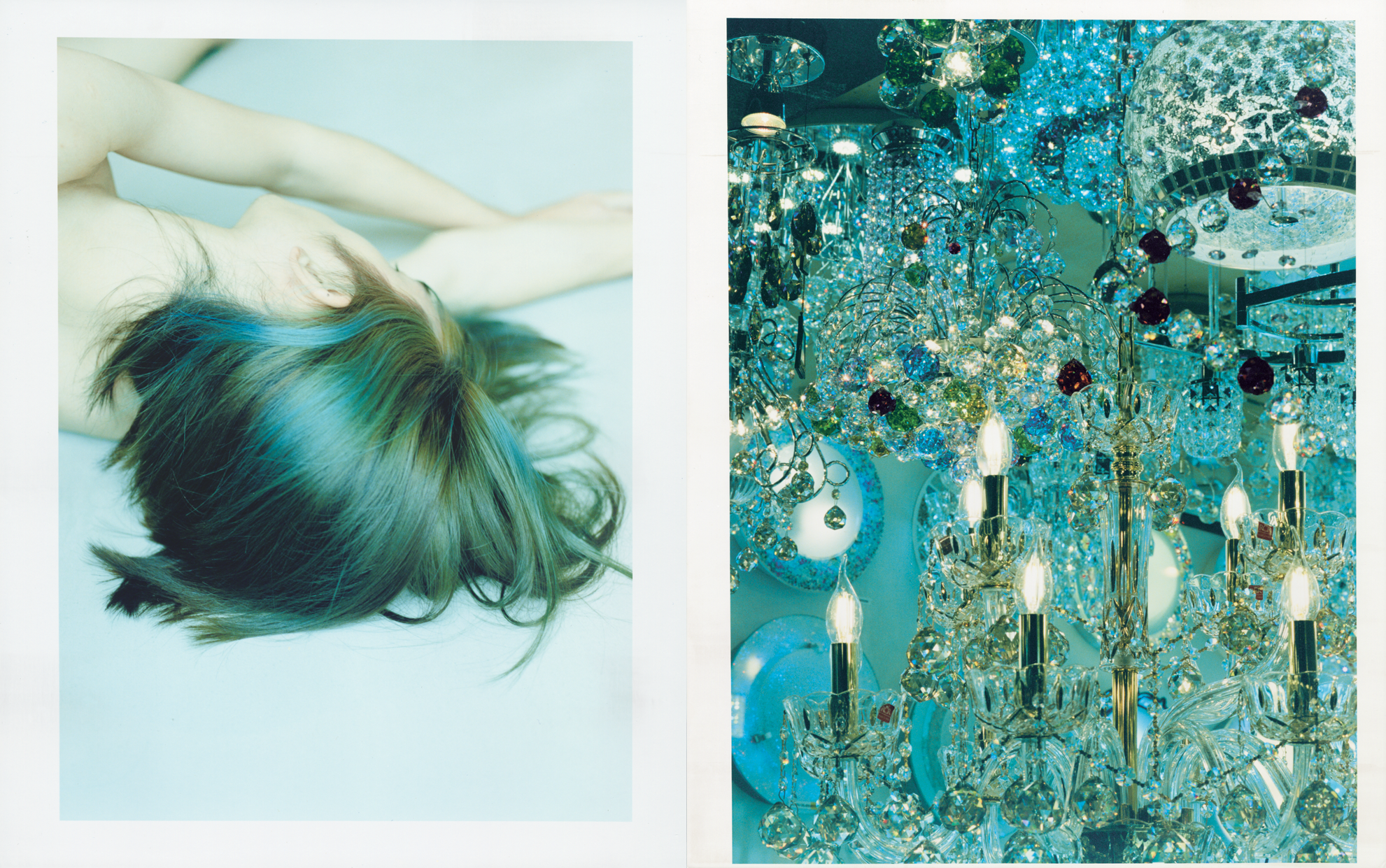 This freedom of expression she grants herself is also what she leaves to or demands from the viewer. Taking a piecemeal approach to photography, she isolates, showcases, and places the elements that make up her photographs on an equal footing. ‘I want to make them into fragments and I want the viewer to reconstruct images in their head.’ Textures, materials, surfaces, and shapes alternate, are juxtaposed, sometimes merge, or are linked by colour. ‘I want to restructure the boundaries that were or are considered natural between the body and minerals, humans and animals, humans and machines, and also nationalities and races, depending on sexuality and sex.’ She lowers the barriers, starting with those relating to the body by preferring to show her subjects naked, equal. After focusing on pleasure, Mayumi Hosokura continues her photosensitive quest by examining love, using stars as interlocutors in her series Crystal Love Starlight.