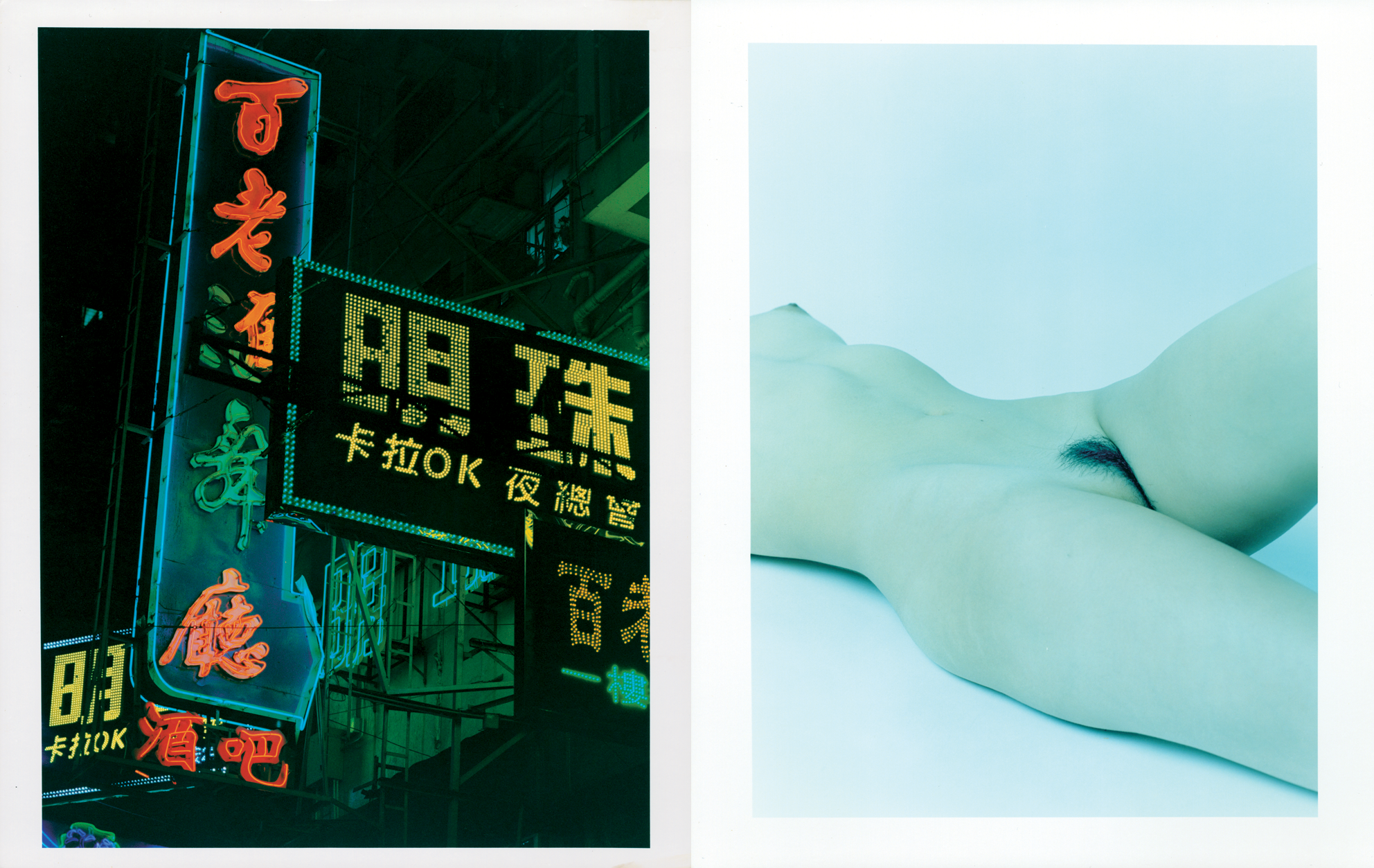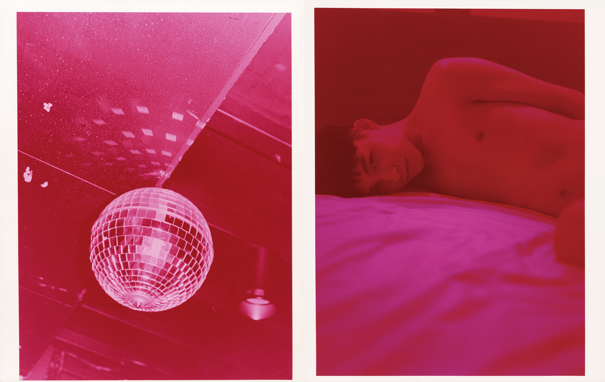 Pink, yellow, green. The colours are striking to the eye in a visual explosion that becomes audible due to the chromatic rhythm given to it. The dynamic is accentuated by repetition. The same photo can change its colouring, offer an opposite or complementary meaning and compose an entire score with the sequence or connections that are created. Bodies are bare, genitals are visible. A joyful sense of freedom reigns. Neither voyeuristic nor showy nor vulgar, humans are presented innocently, calm and exquisite. The subjects participate in the excitement, and beyond the multicoloured shades, neon lights and disco balls invite the viewer to join the party. Fragments of bodies and objects are captured with the same enthusiasm as minerals and plants. Functioning as metaphors, these parallels make the elements one homogenous whole.