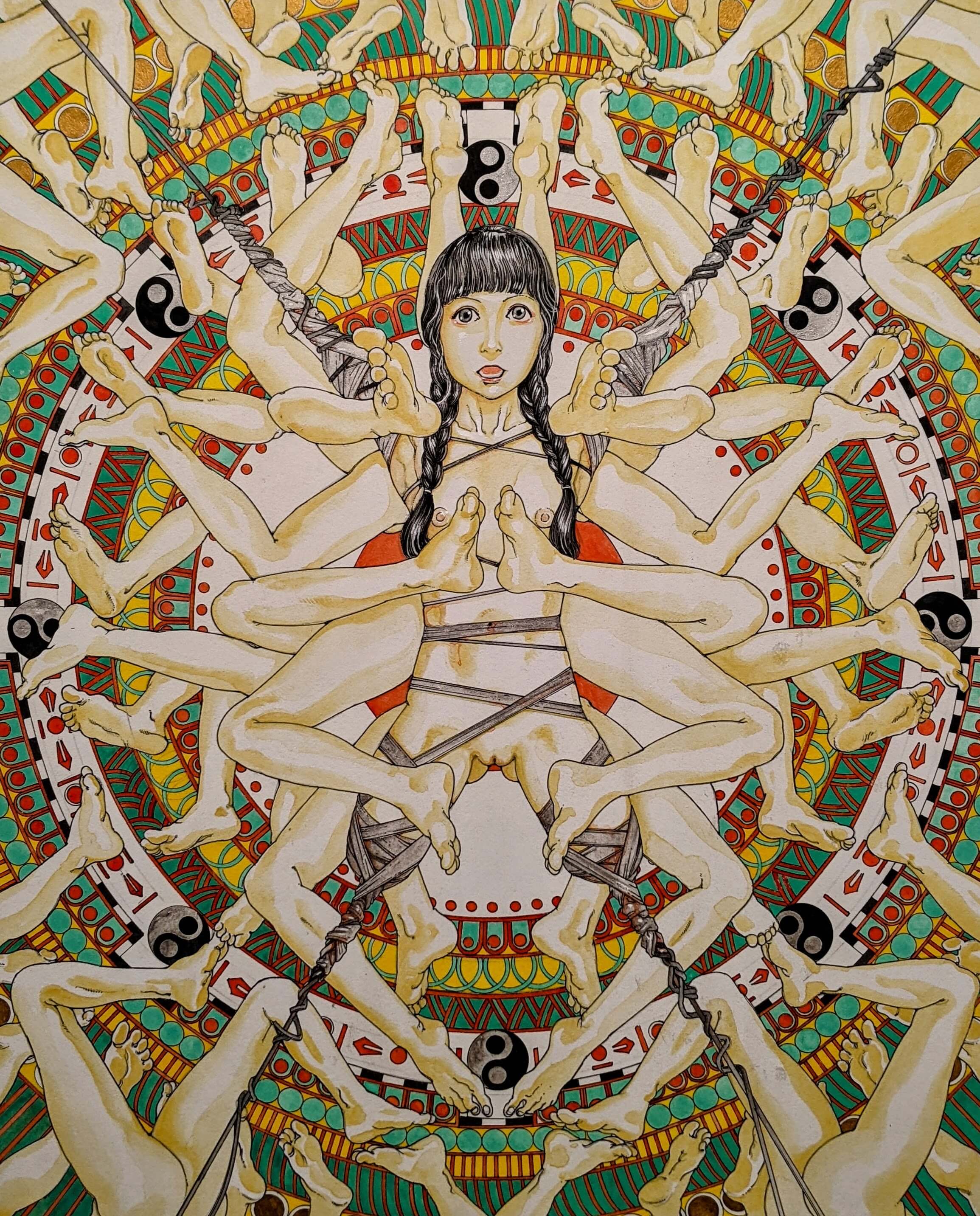 In his series ‘Mandalism’, this celebrated ‘ero-guro’ artist plays with visceral and repulsive interpretations of Buddhist motifs.