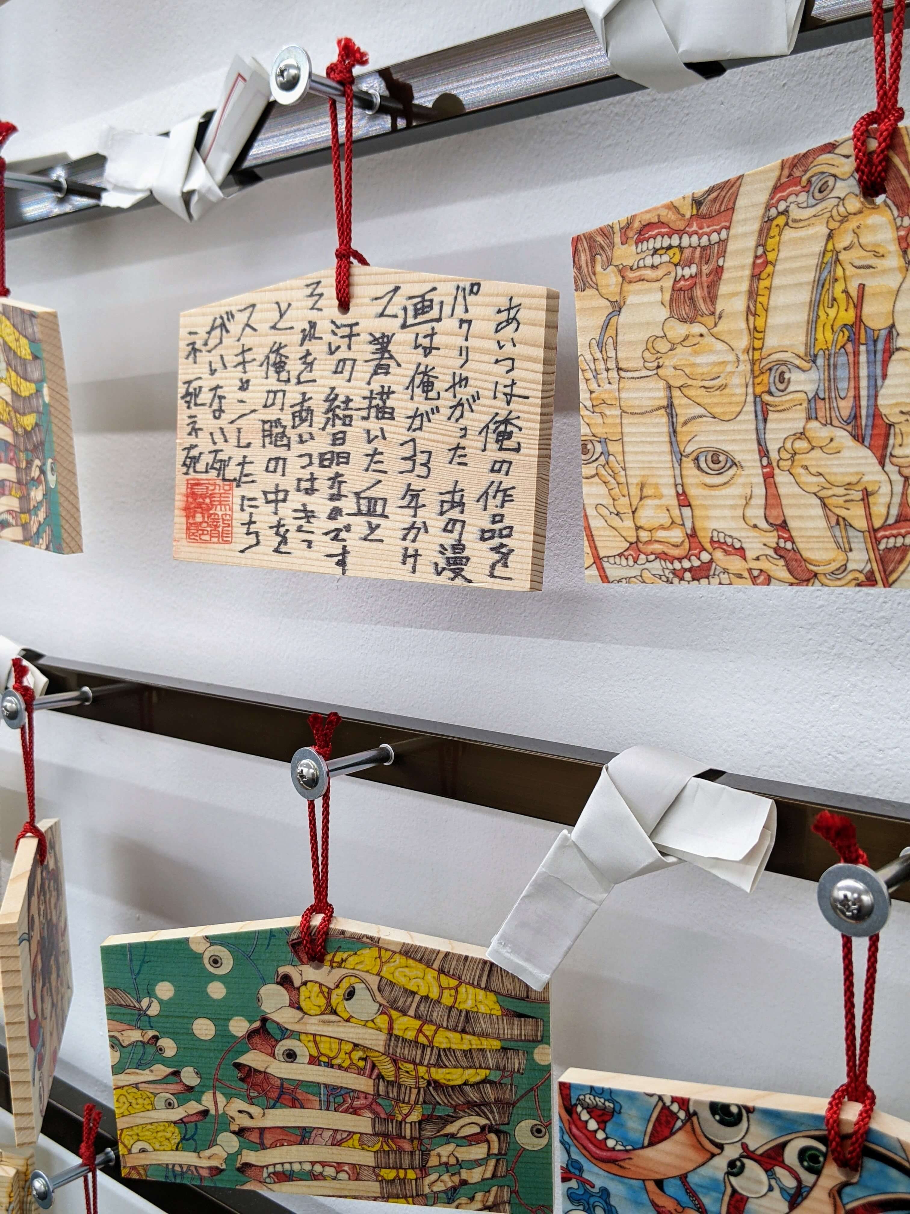 ‘Ema’ and ‘omikuji’ on display at the ‘Mandalism’ exhibition.