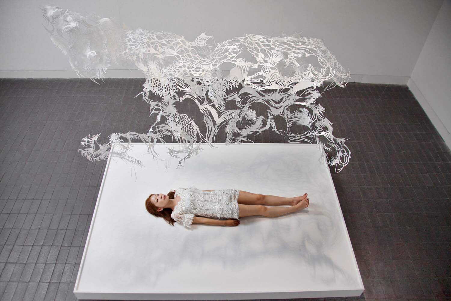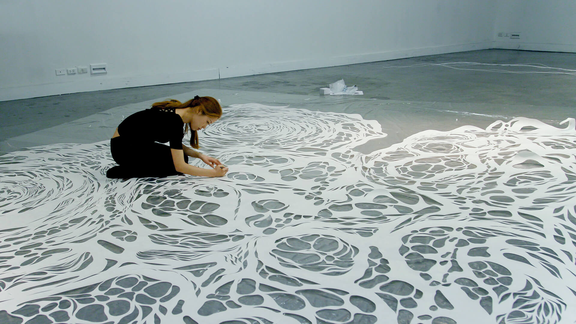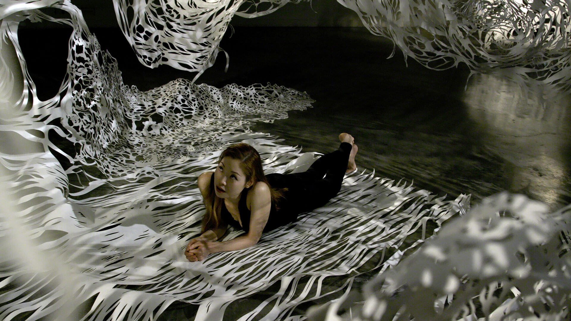The artist reinvents ‘kirigami’, the art of cutting paper, in her colossal pieces that give off a captivating sense of fragility.