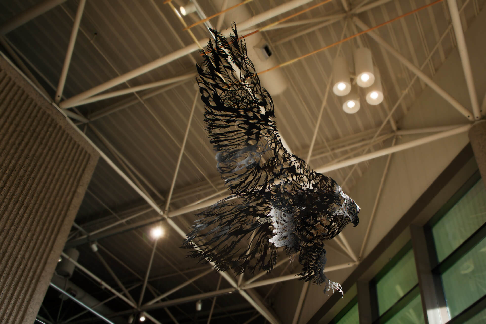 This life-size whale, unveiled at the Bangkok Art and Culture Centre in September 2018, catches the gaze particularly due to Kojima’s attention to detail: the whole surface is covered with complex patterns that demonstrate Nahoko Kojima’s dexterity. The immense sculpture made from cut paper therefore appears, in spite of its size, to float just above the ground.