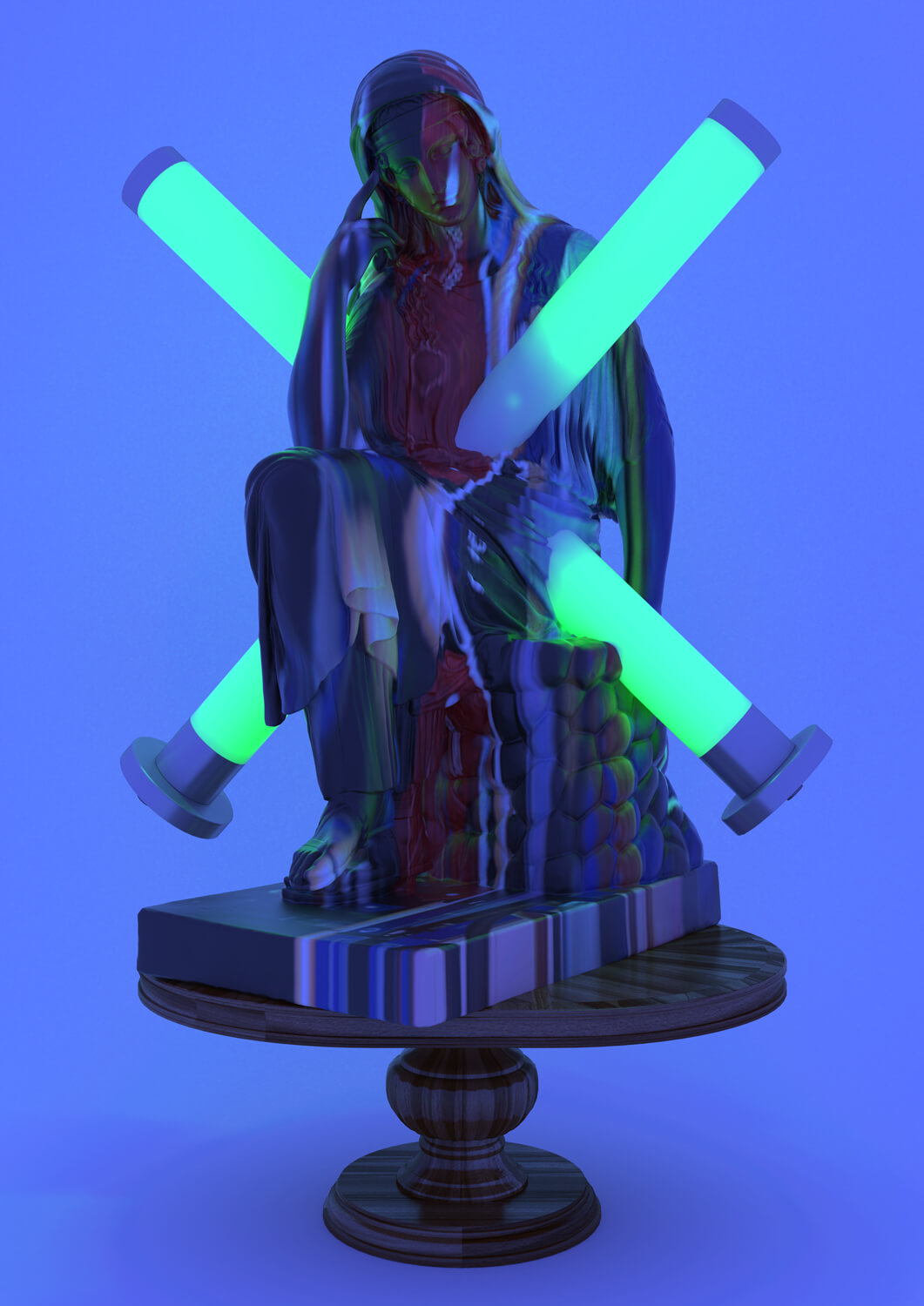 His sculptures, although created in a three-dimensional space, are only observable from the two dimensions of our screens (or the photographic paper the artist uses to exhibit his work in galleries). The artist reveals in this way the interesting relationships that exist between reality, virtual reality and the bi or three-dimensionality from which we access them.