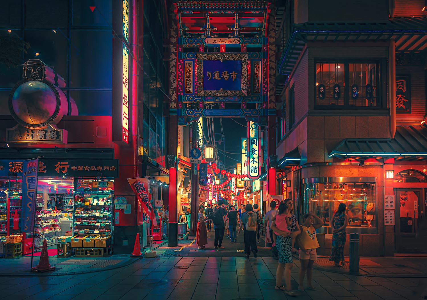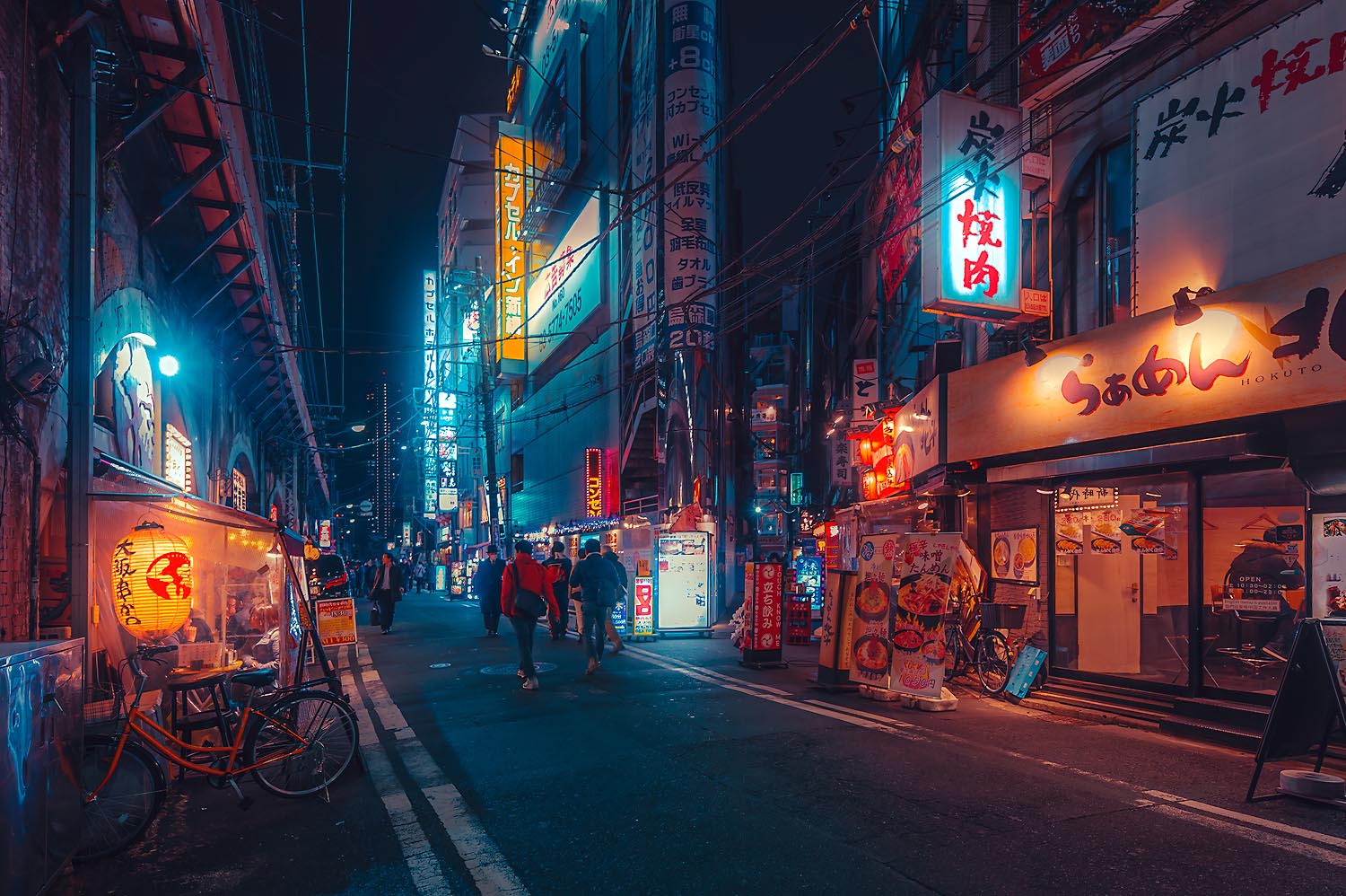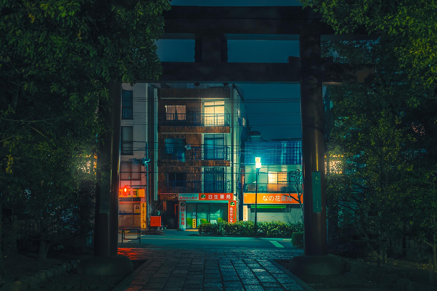 In this series, the photographer, a graduate from the School of the Art Institute of Chicago, wandered through cities in Japan to capture their main, bustling streets lit by neon lights, but also their winding streets, some of which were empty, and others of which had a few night-time wanderers. He also featured the front windows of izakaya and various boutiques. This contrasts with the other work by this artist based in Memphis, Tennessee, because Dream World involved a significant amount of work during the photo editing stage, with particularly close attention paid to colours and contrasts.
