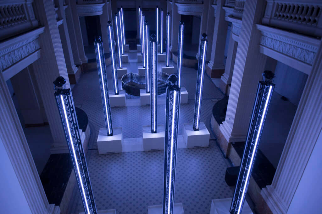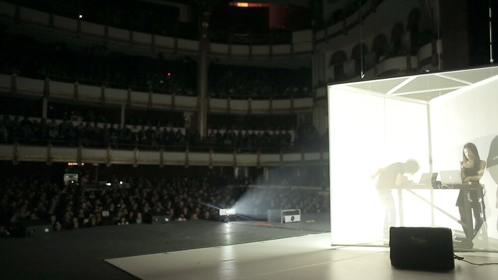 The performance has also taken place at MU artspace in the Netherlands, Elekta Mutek in Quebec, and at Fuz festival in Gentilly in the Paris suburbs, with each variation unique to the architectural space it inhabits.