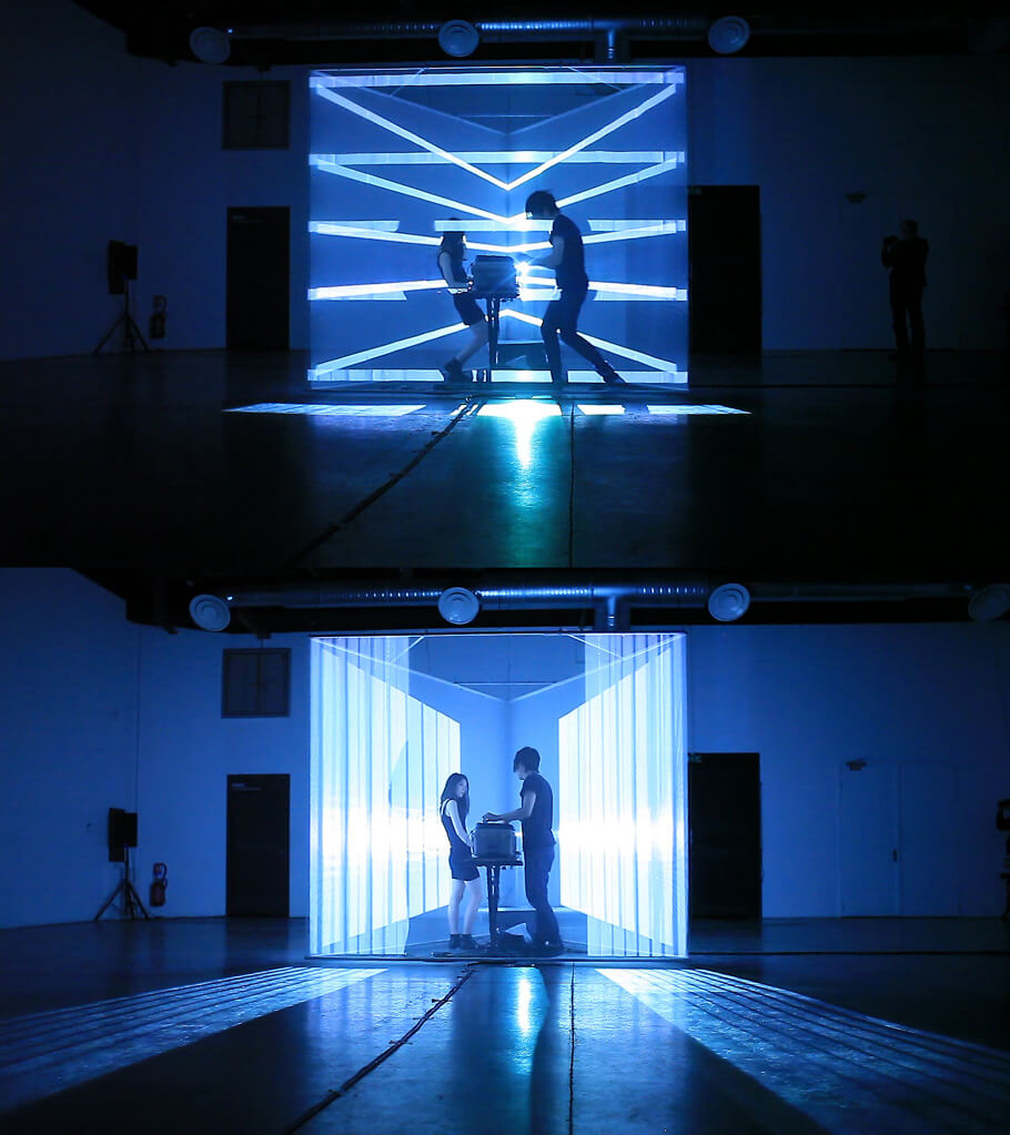 Takami Nakamoto and Noemi Schipfer have created works for prestigious institutions across the globe, from the Lyon Opéra House to the Tate Britain and the Roppongi Art Night in Tokyo. The Franco-Japanese artists mostly create ephemeral works, such as their 2013 performance at Paris’s famed Nuit Blanche. The piece, entitled Late Speculation, took place at the Pavillon Carré de Baudouin with Takami Nakamoto live-mixing an electronic music soundtrack and Noemi Schipfer directing the visuals. The pair were enveloped in darkness with beams of light criss-crossing the architecture of the space, which was punctuated by the music.