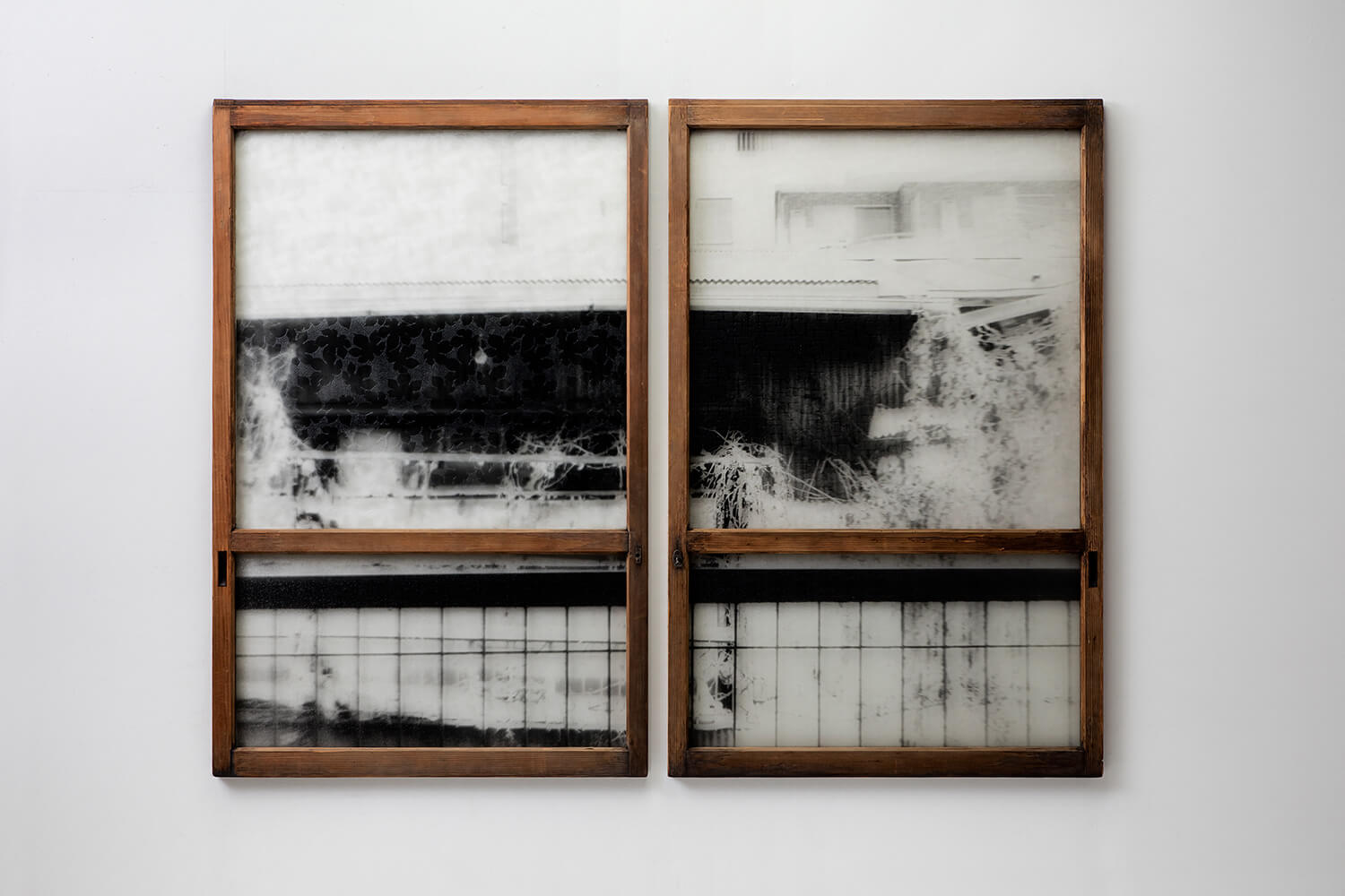 A graduate of intermedia art from Tokyo University of the Arts, Nozomi Suzuki likes using the keyhole on her door as a pinhole, a simple method of photography whereby an image is reproduced once light has passed through a small aperture. As the final part of the process, the artist collects window frames from buildings due to be demolished. And then the magic happens: behind a window frame that looks as if it’s on the verge of falling apart, an anonymous landscape is formed in black and white, intriguing in its blinding whiteness. It’s a strange, almost surreal way of printing memory.