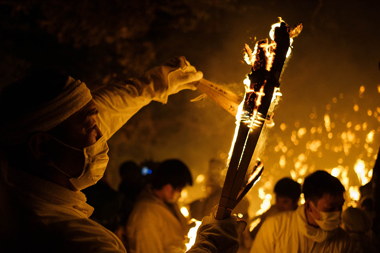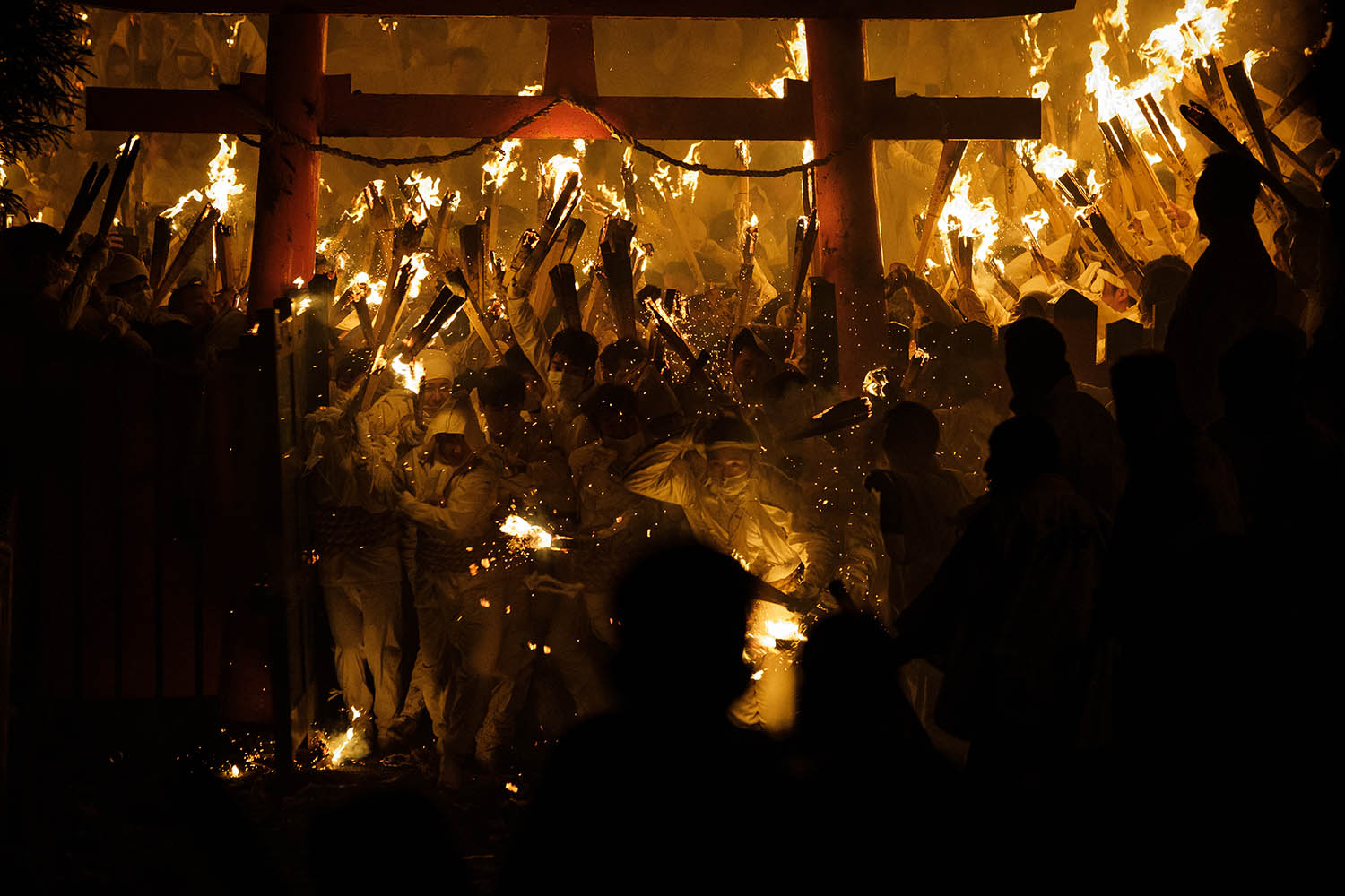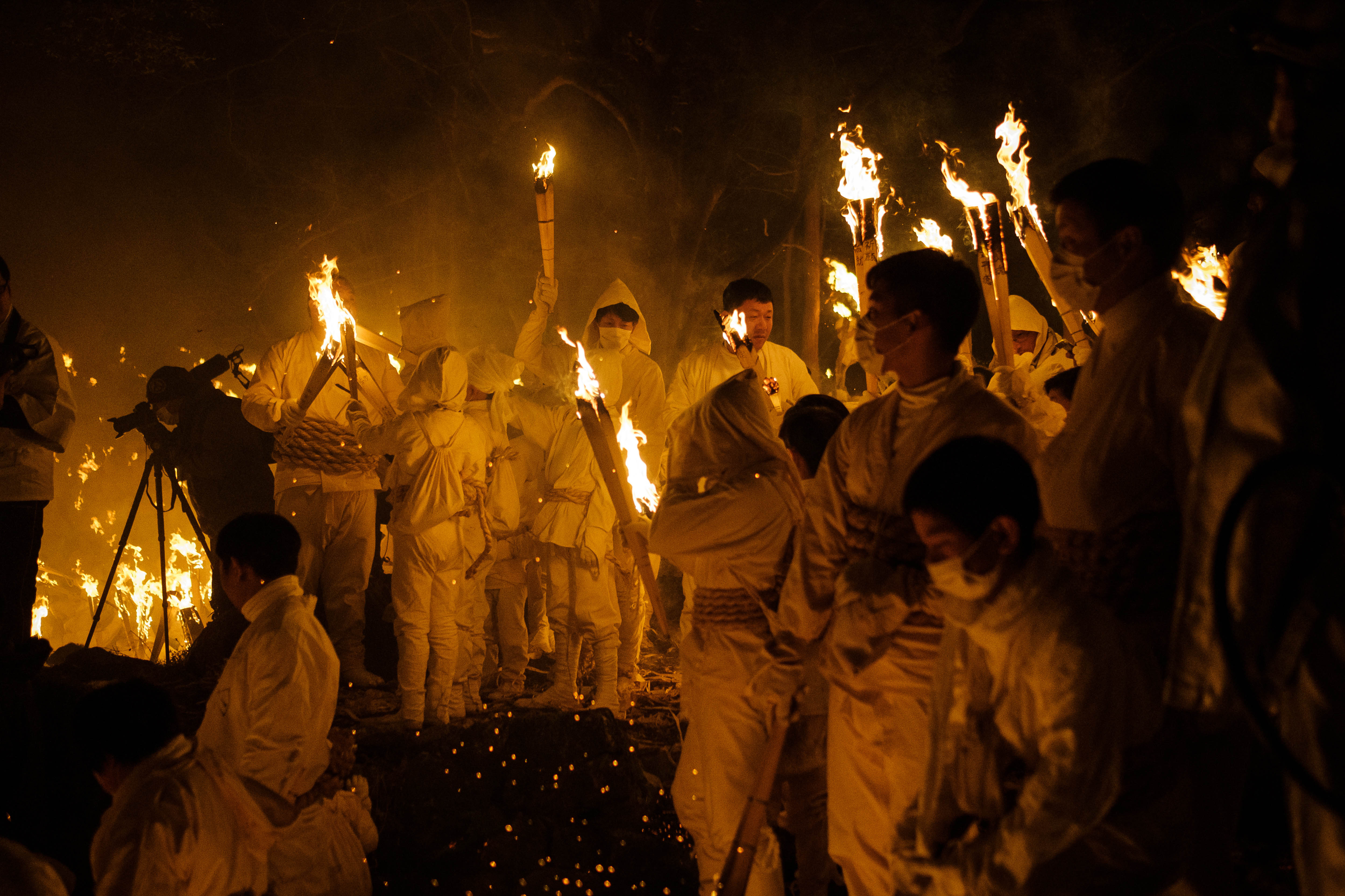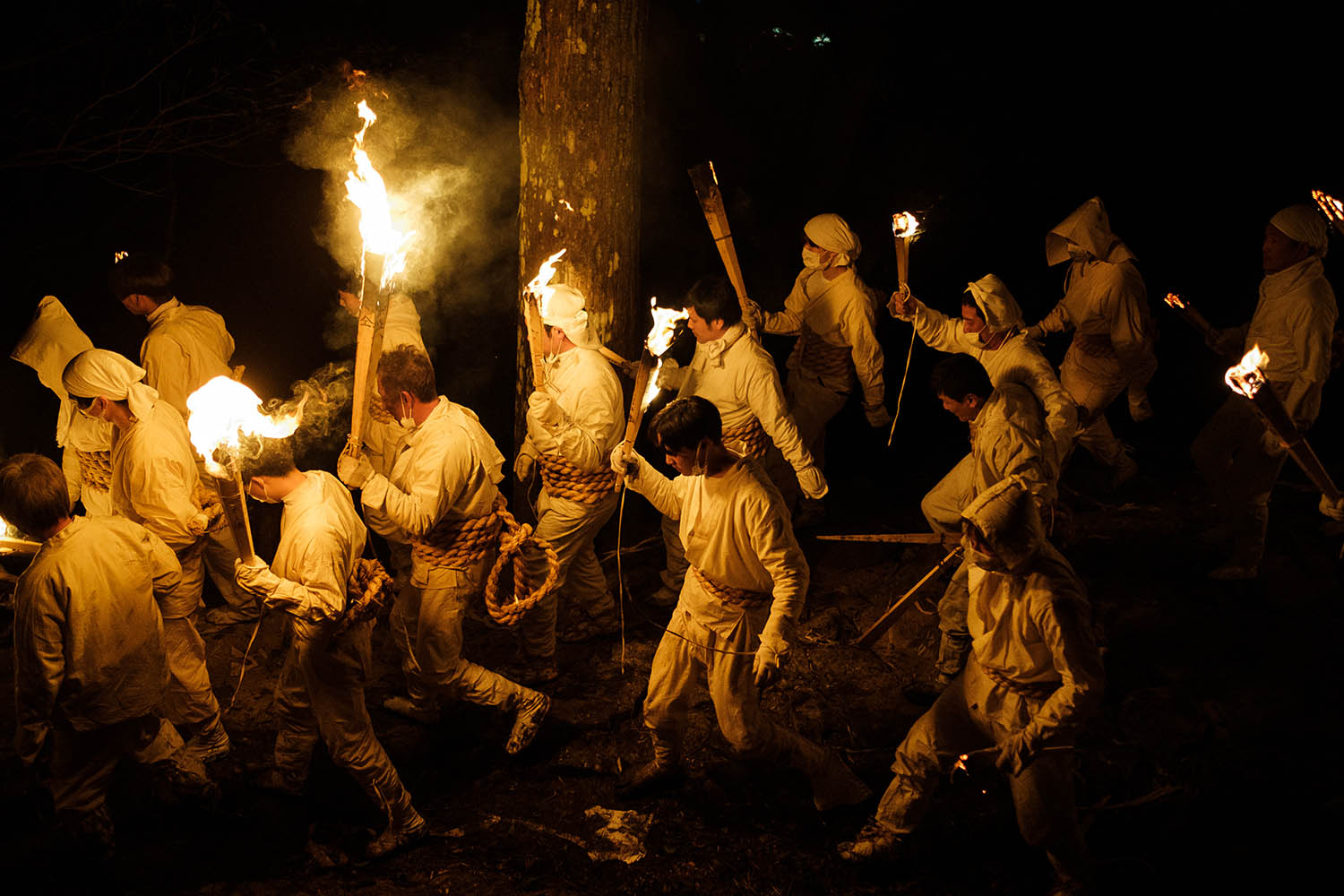 Each year, deep in the Japanese winter, 2000 men dressed in white gather in the middle of the night at the Kamikura-jinja Shrine that lies halfway up Mount Gongenyama in the Wakayama region.