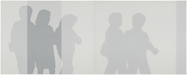 In 1964, the artist started work on the series Shadow Paintings, painting the shadow of a coat hanger on a canvas, on which he had previously fixed a clothes hook. These experiments led to the appearance of shadows of figures on his canvases, or on exterior walls. According to Jiro Takamatsu’s vision, the shadows of the objects and bodies represent absence, non-existence, and enable a better representation of the essence of things than the objects themselves. This reflection, which revolutionises the way we perceive each piece, arose from the observation of images of shadows in 19th-century Japanese wood engravings.