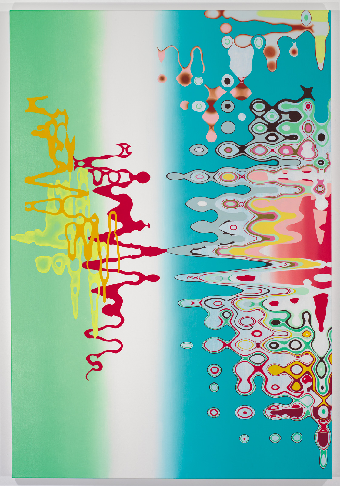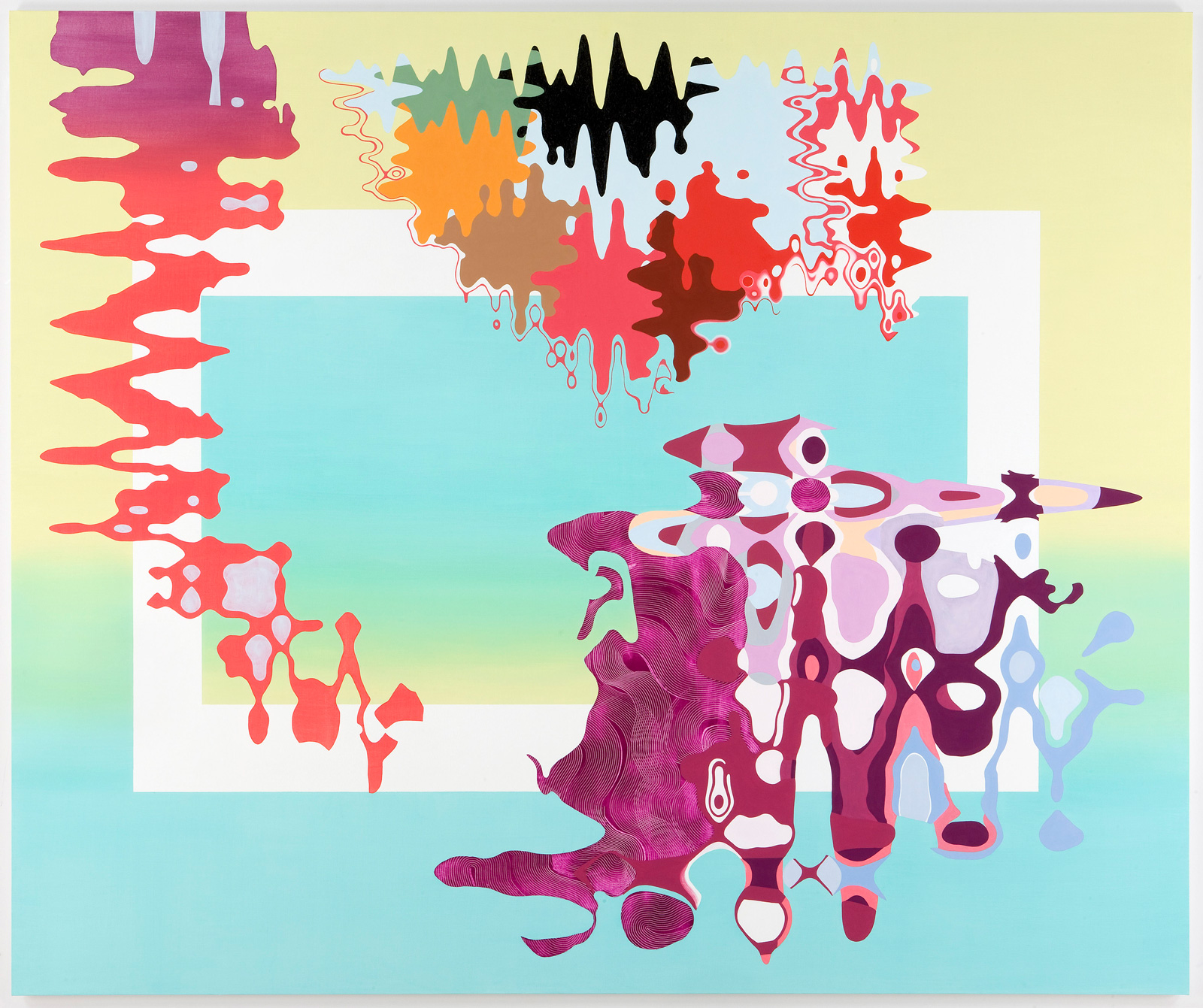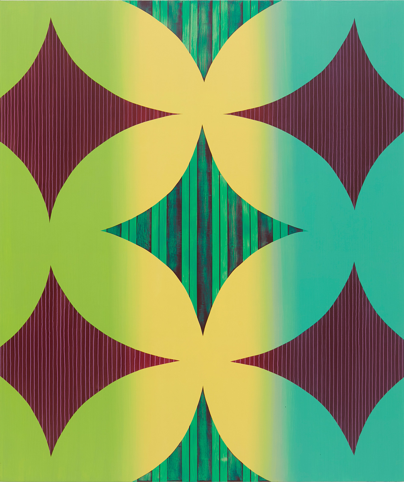 Conscious of the fact that art can be a tool through which to make a statement, Shirley Kaneda seeks to disconcert her audience and invite them to go beyond their expectations. Her decorative works deconstruct the notions of ‘feminine’ and ‘masculine.’ Beauty, fluidity, and grace are seen as being in opposition to heroism, aggression, and rationality. By playing with sharp shapes and more delicate curves and warm hues, she provides an unexpected reflection on contemporary social issues. ‘It’s a way of working with subjects, like gender and difference, that cannot necessarily be explained through narrative’, she concludes. The painter developed these modern reflections with the aid of digital tools before returning to her first love: paintbrushes.