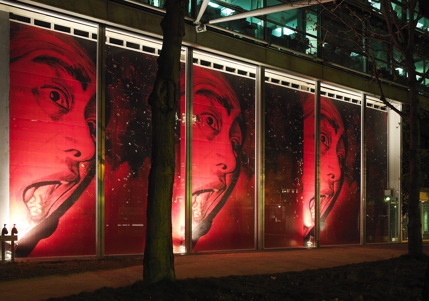 Known for his illustrations, the graphic designer started painting in the 1980s, producing darker pieces in which red dominates.