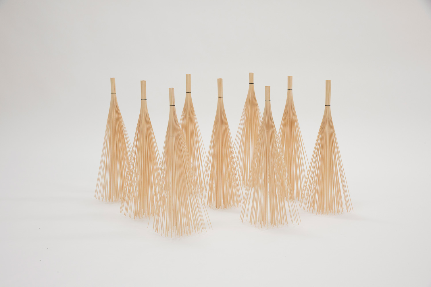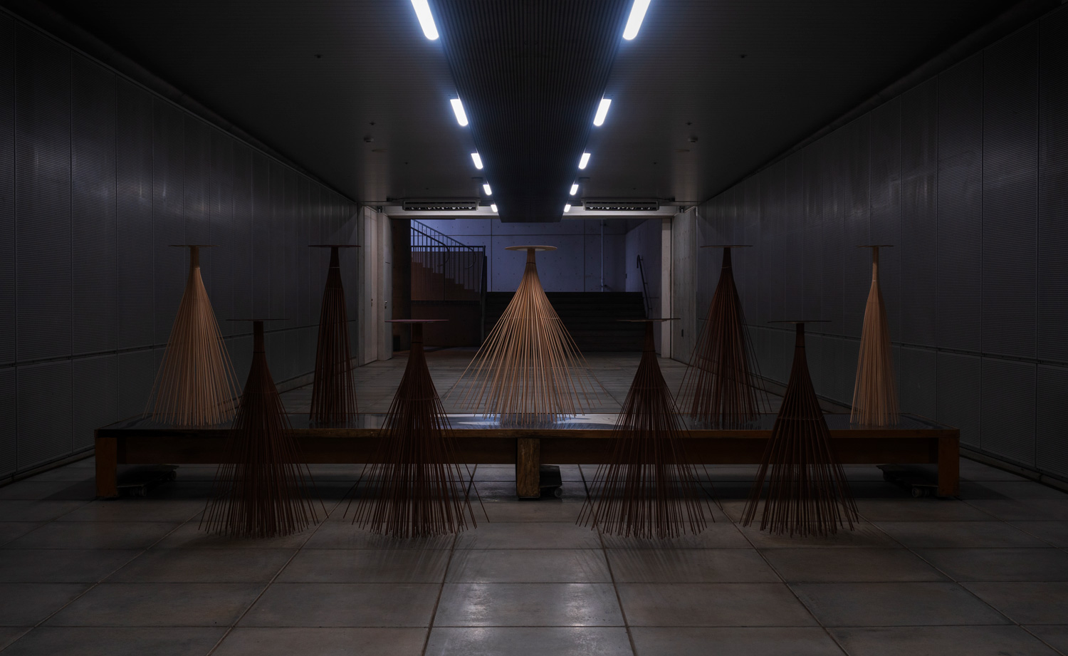 Although rubbish things do not appear to have any use at first glance, their ability to respond to the movements of a human body and lean on things that surround them gives them a certain consciousness. When pushed, they return to their original position, find comfortable places to settle, and seem to coexist, independently of us. Watching them move, we can only wonder: are they alive after all? Do they have a will of their own? ‘In reality, my things move thanks to the wind, and the movement around them. They are made from 100 wooden rods in reference to centipedes, written in kanji as 百足, or 100 legs. The movements of this animal fascinate me. When one leg moves, all the others follow, in a sort of chain reaction’, he explains.