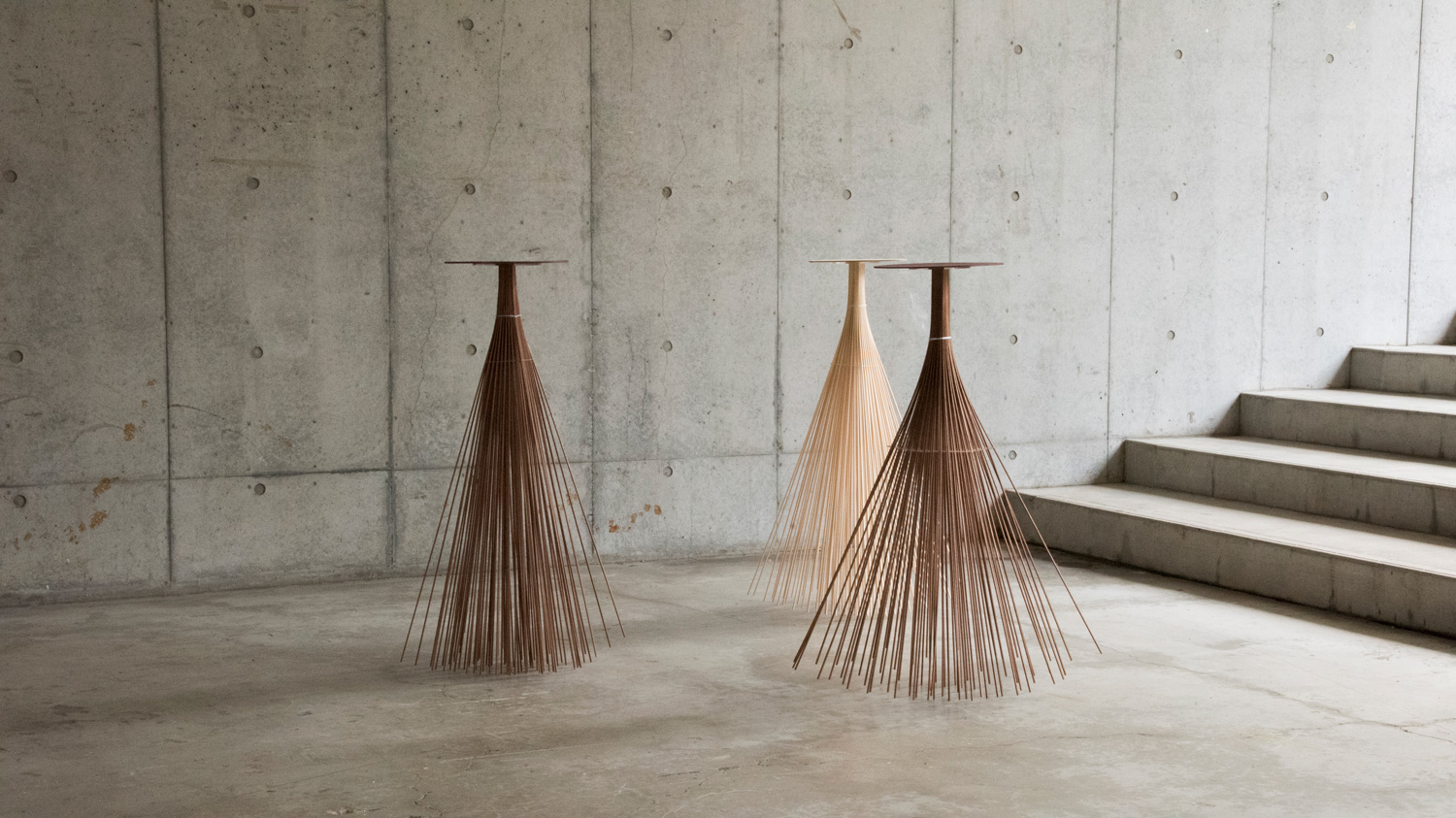 Architect Takuto Ohta, born in France in 1993, is behind these intriguing sculptures. A graduate from Tokyo University of the Arts, he takes a particular interest in the relationships between humans and their creations. ‘We create in an inorganic way. We use shapes, masses that are supposed to remain immobile. Fixed, bound by their own body, they appear almost powerless’, the artist declares.