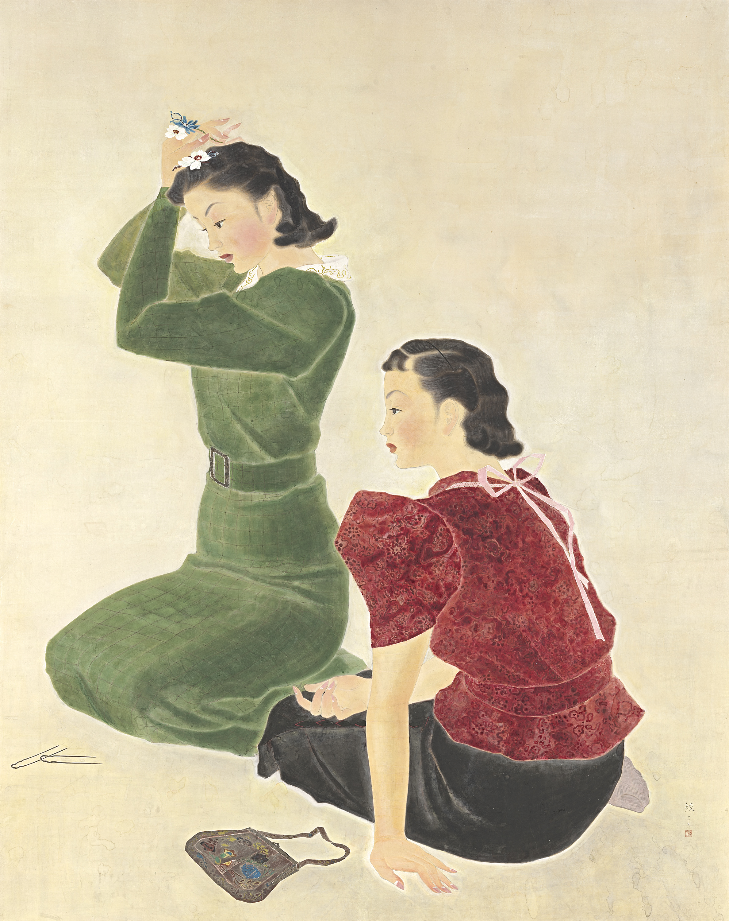 Negishi Ayako, ‘Waiting for makeup’, 1938, coloured inks on paper, National Gallery of Victoria, Melbourne, Purchased with funds donated by Jennifer and Brian Tymms, 2018