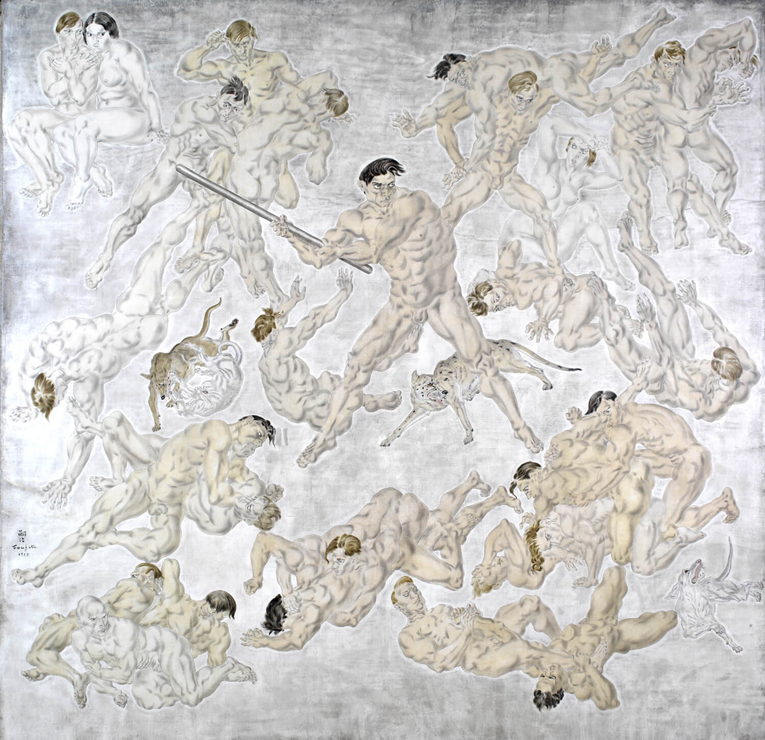 Léonard Tsuguharu Foujita, ‘Combat I’, 1928, oil on canvas, 299.7 x 301.6 x 4.7 cm, Maison-atelier Foujita, Conseil Départemental d’Essonne, Evry France, by Laurence Godart © Fondation Foujita / Adagp, Paris, 2018 © Maisonatelier Foujita. CD Essonne