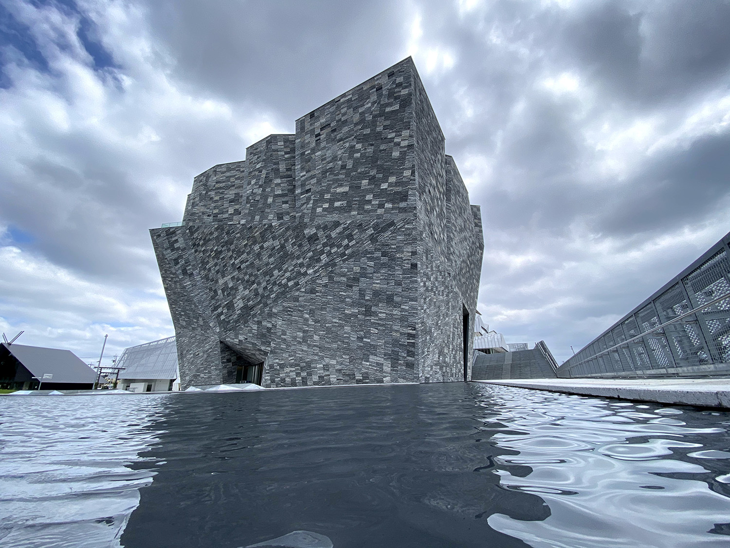 The museum, which stands 40 metres high and has a surface area of 12,000 square metres, was constructed from 20,000 granite stones assembled in an asymmetrical arrangement, which gives the building the appearance of a monolith in a work of science fiction. The aim of this cultural complex is to bring together artistic disciplines like literature, anime, natural history, and fine arts in one place.