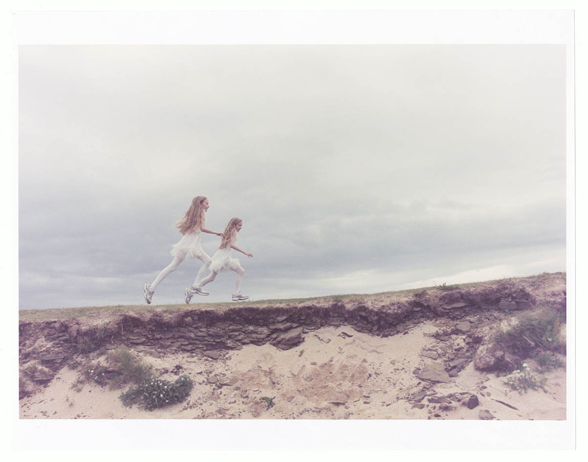 ‘I have never seen such a strong connection between two human beings. There is always a peaceful harmony between them’, says Ariko Inaoka in the publication Eagle and Raven. The sisters, who were nine when the series started and sixteen when it ended, follow the same routine, go to the same school, and take the same dance classes. Throughout dreamlike and surreal images, the twins always appear intertwined, playing upon just one or two physical similarities—their legs, or their faces, for example. Always from angles that present diverse ways of opposing or associating their bodies, the images are often taken against rugged natural backdrops.